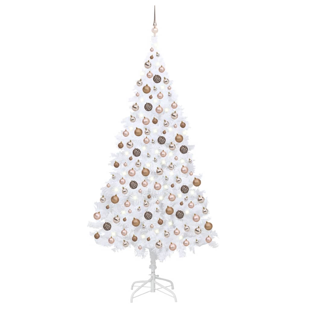 Brad Crăciun pre-iluminat artificial set globuri alb 210 cm PVC GartenMobel Dekor