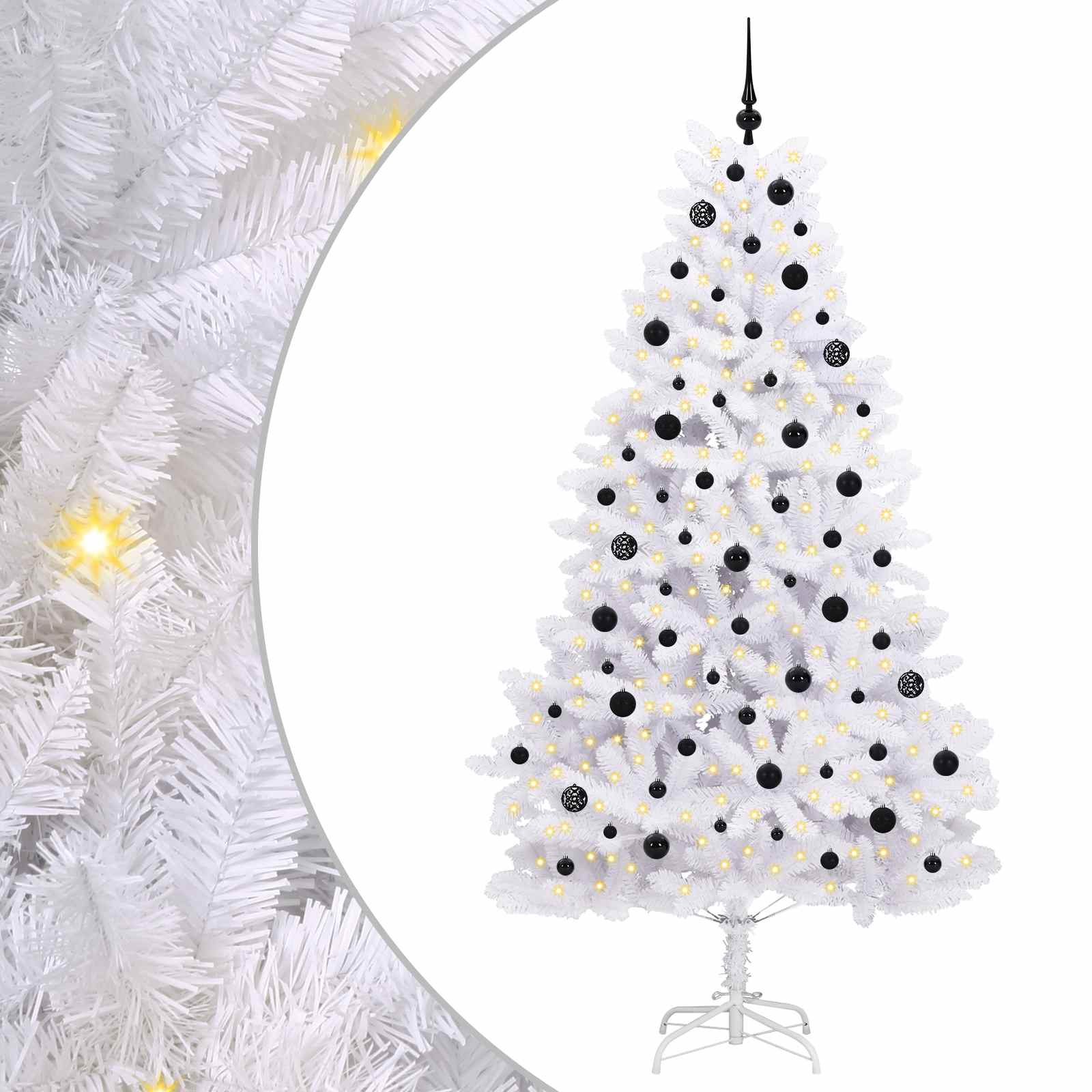 - Materiale: Fabricat din PVC calitativ și oțel robust, bradul artificial e durabil și arată realist în fiecare sezon. PVC-ul dă o senzație moale și autentică, iar oțelul adaugă stabilitate, făcând bradul fiabil și atrăgător.