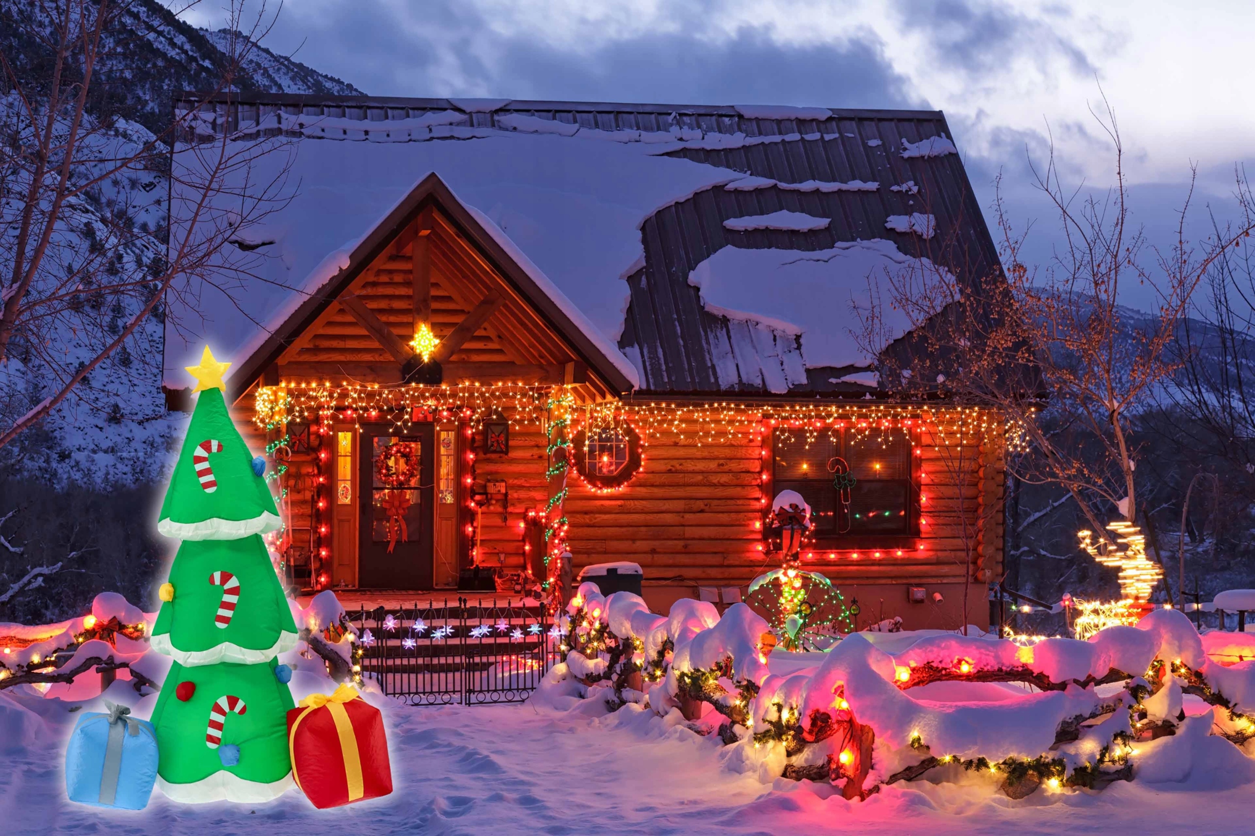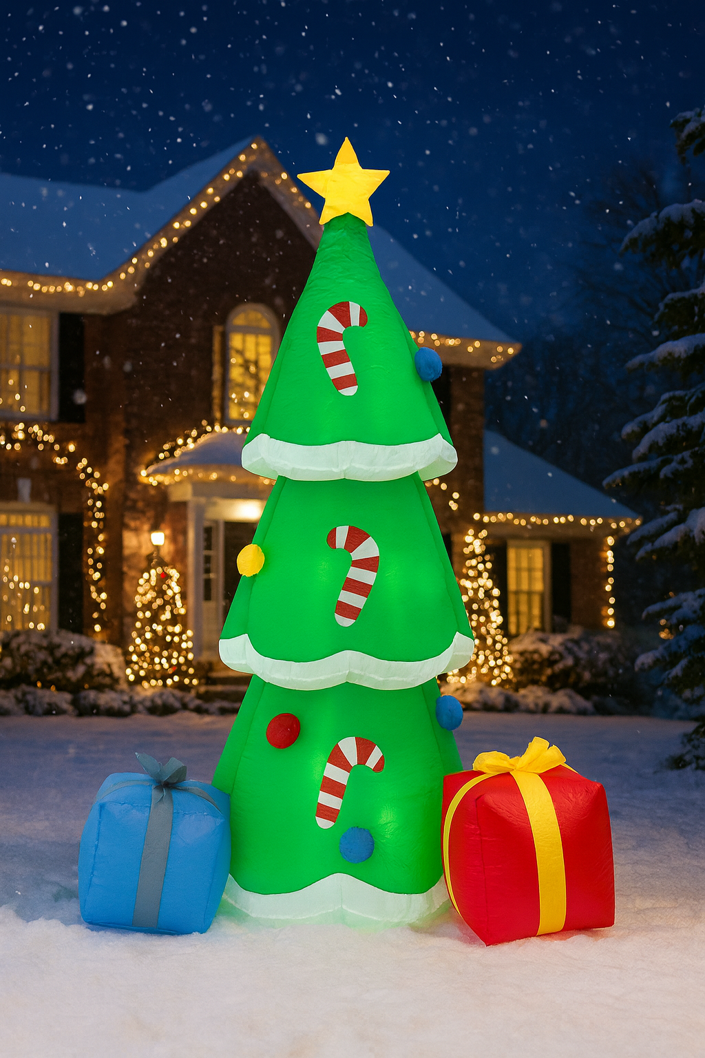 Descriere Brad Craciun exterior gonflabil, iluminare LED,