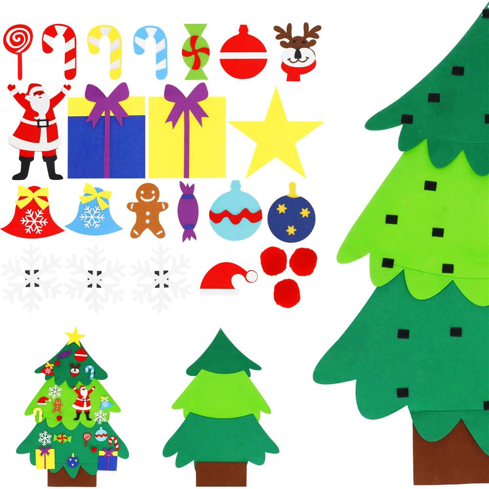 Brad de Craciun din pasla pentru copii, 115x80 cm, cu 26 decoratiuni Velcro