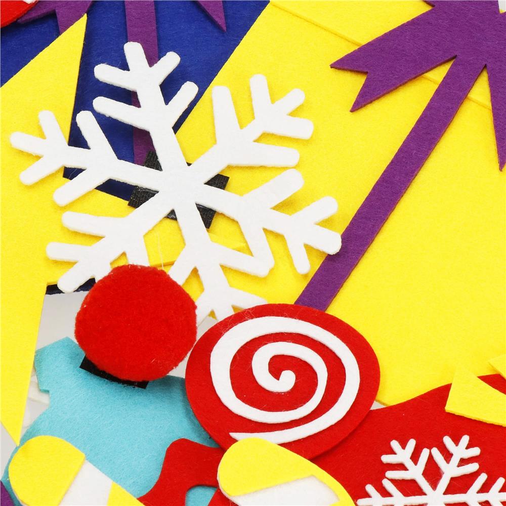 Acest brad de Craciun din pasla este o alegere excelenta pentru camera copilului, gradinite sau spatii unde nu exista loc pentru un brad clasic. Materialul este placut la atingere, iar decoratiunile ajuta la dezvoltarea creativitatii, coordonarii si motricitatii fine, intr-un mod distractiv si festiv.