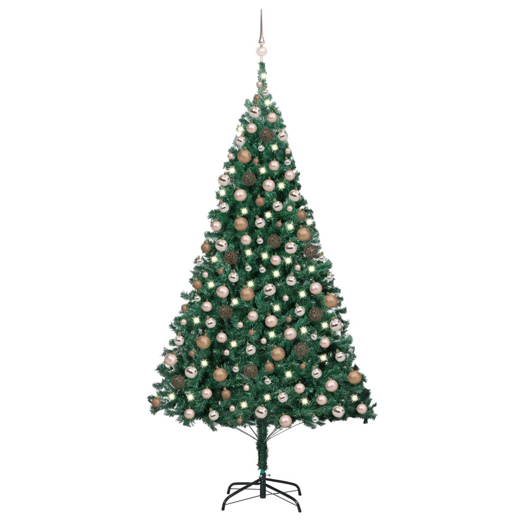Brad de Crăciun pre-iluminat cu set globuri, verde, 210 cm, PVC GartenMobel Dekor