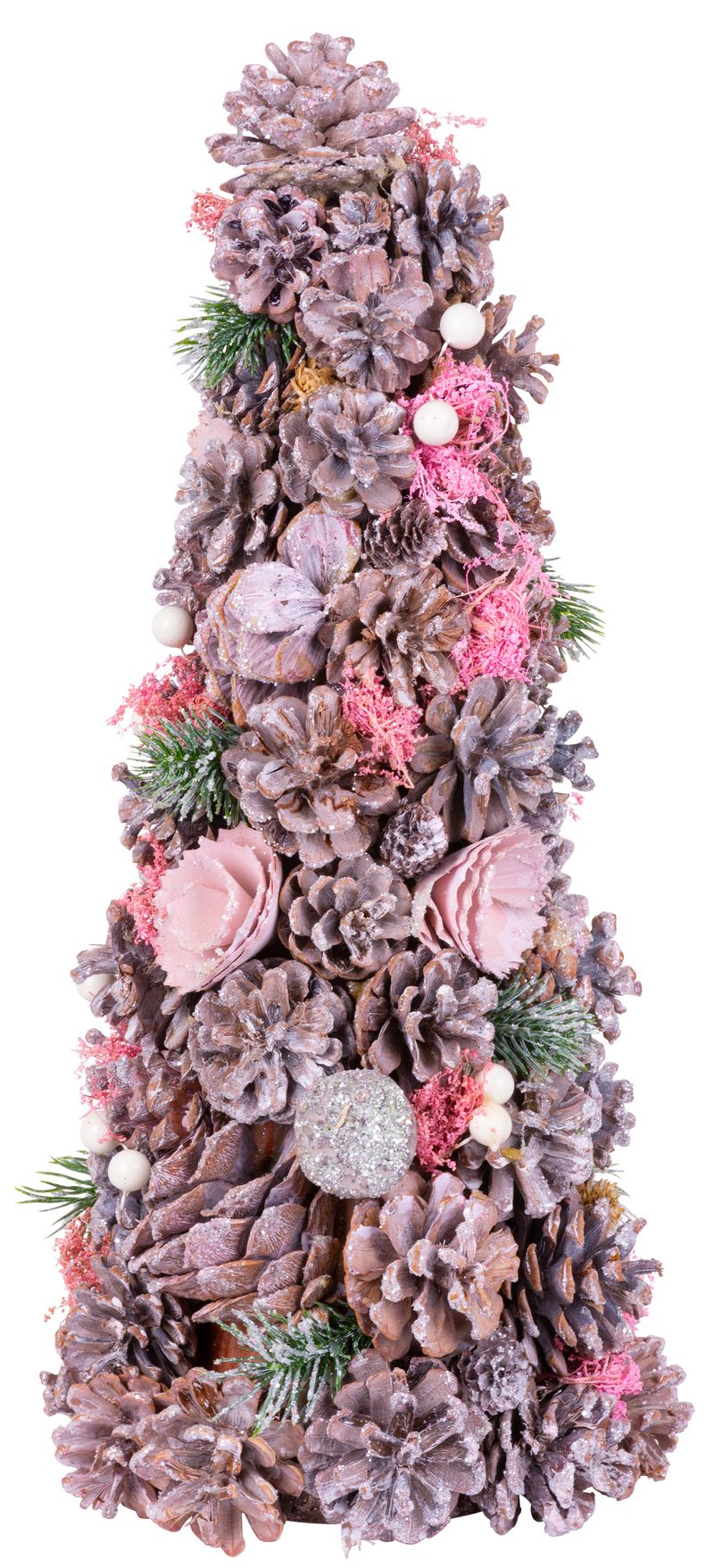 Brad decorativ de Craciun roz, ornamentat, MagicHome, 40 cm