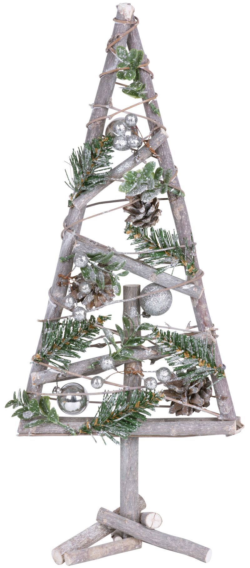 Brad decorativ din lemn cu globuri argintii MagicHome, 20x3x47 cm