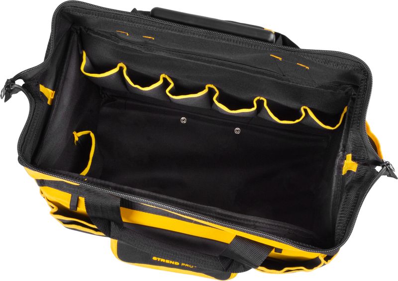 Praktická brašňa Strend Pro na náradie je praktickým pomocníkom pre každého majstra a kutila. Obsahuje množstvo bočných aj vnútorných vreciek na uloženie menšieho náradia. Možnosť použiť aj ako kufor na náradie, keďže obsahuje rukoväť a kolieska. Uzatvárateľná zipsom. Maximálna nosnosť: 20 kg. Rozmery: 44x24x42 cm.