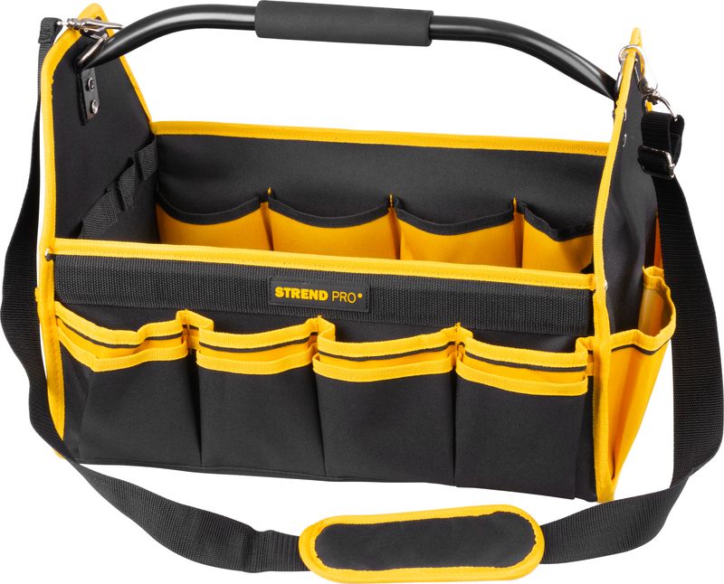 Praktická brašňa Strend Pro na ťažké náradie je praktickým pomocníkom pre každého majstra a kutila. Obsahuje množstvo bočných vreciek na uloženie menšieho náradia. Pripojiteľný ramenný popruh pre komfortné prenášanie. Maximálna nosnosť: 20 kg. Rozmery: 45x28x33 cm.