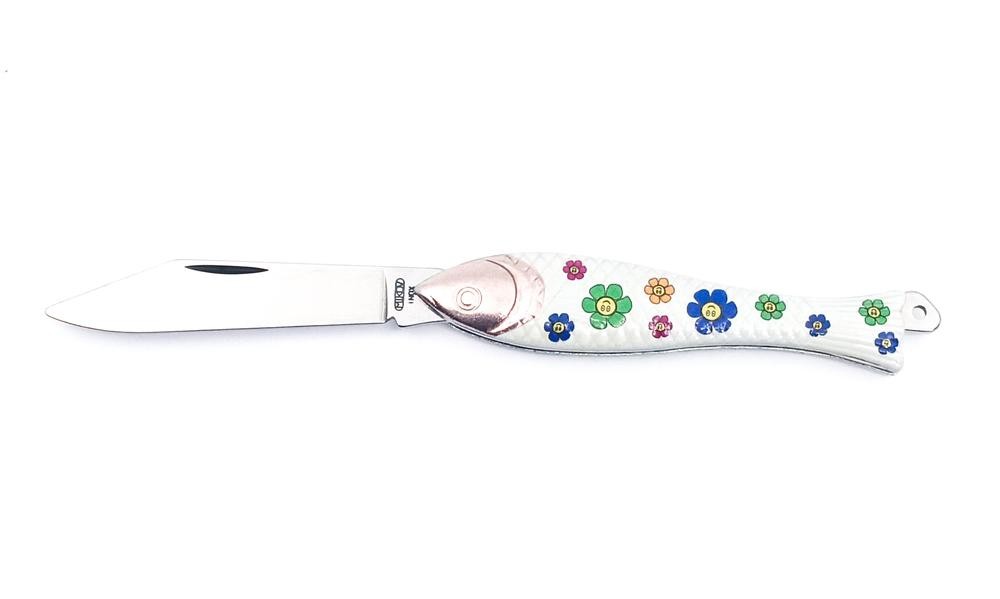 Briceagul Mikov Rybicka cu maner floral pictat manual imbina farmecul unui design clasic cu utilitatea unui accesoriu compact pentru pescuit, camping, drumetii sau colectie. Forma sa iconica de peste il face usor de recunoscut, iar finisajul decorativ transforma acest briceag Mikov intr-o alegere practica si deosebita.