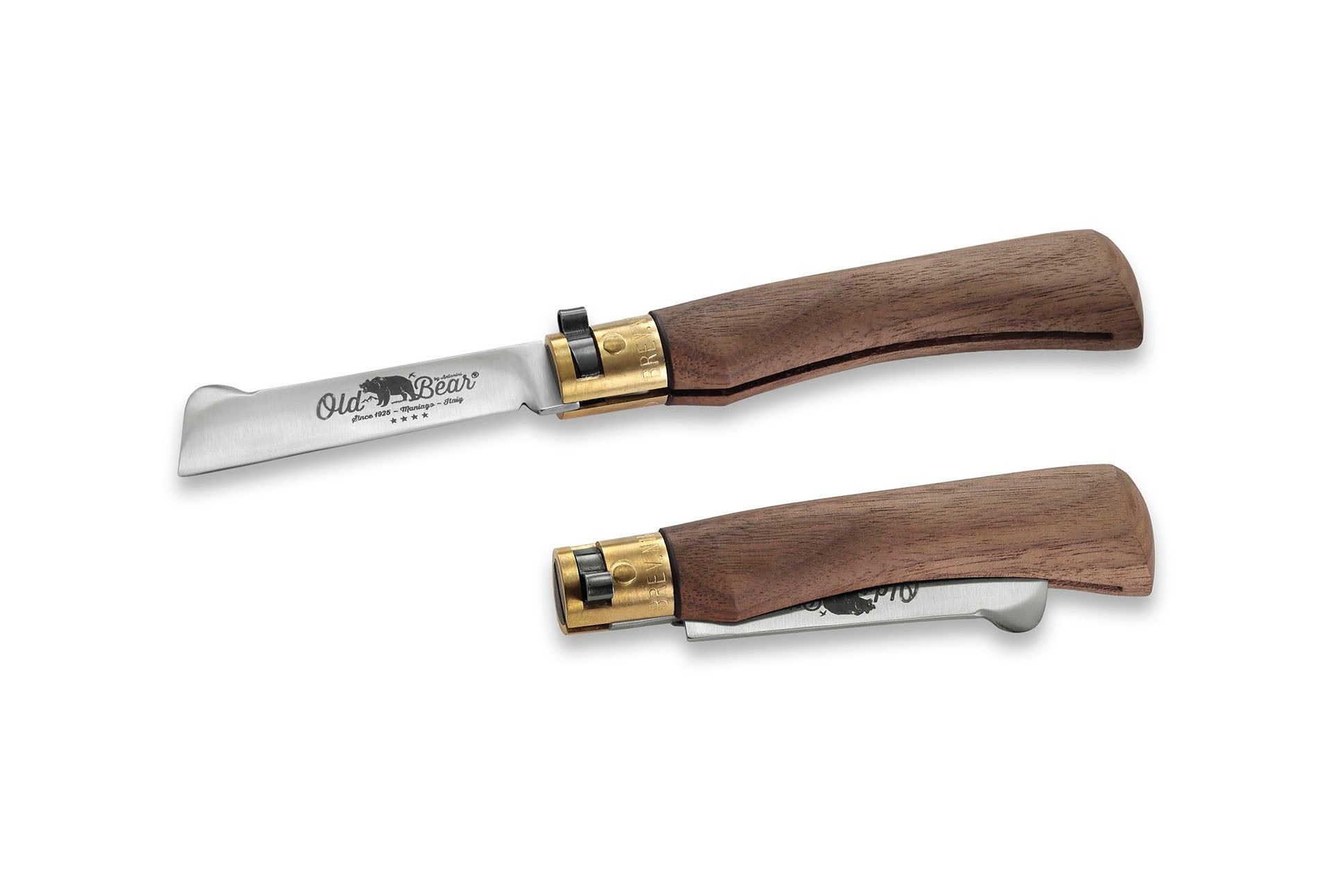 Sistem de blocare: O caracteristica importanta a bricegelor Old Bear este sistemul de blocare (no-return spring mechanism, patent n.1187282 din 1985, Maniago), care ofera 100% siguranta utilizatorului. Atunci cand lama este blocata, ea nu se poate deschide accidental, protejand astfel de eventuale accidente.