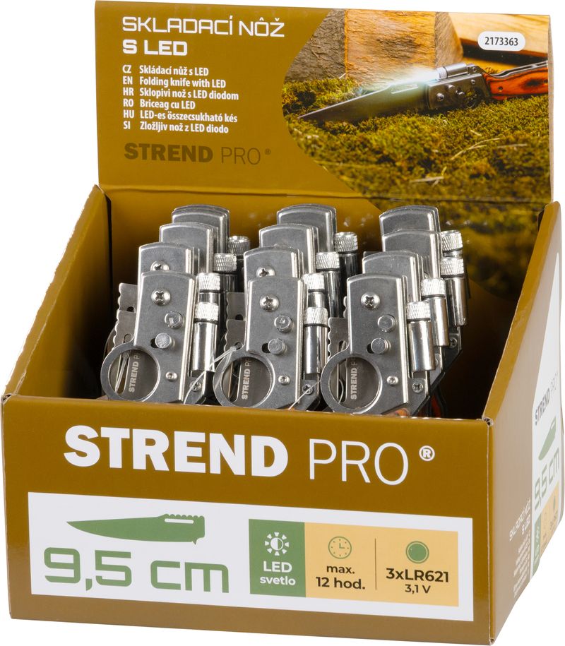 Briceag pliabil Strend Pro XL121901 cu LED, 210 mm, inox, Sellbox 12 buc