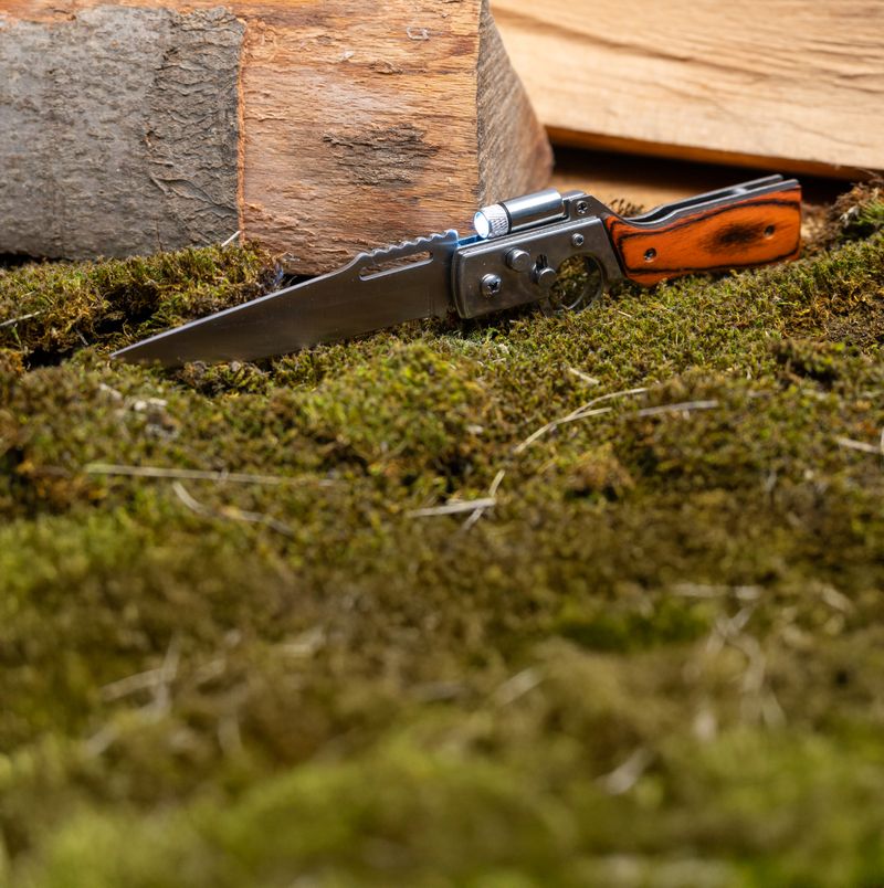 Utilizare: Deschide briceagul, pornește LED-ul pentru a lumina suprafața de lucru și folosește-l pentru tăieri ușoare/medii în activități de exterior sau la gospodărie. Pentru siguranță, păstrează-l pliat când nu este utilizat.
