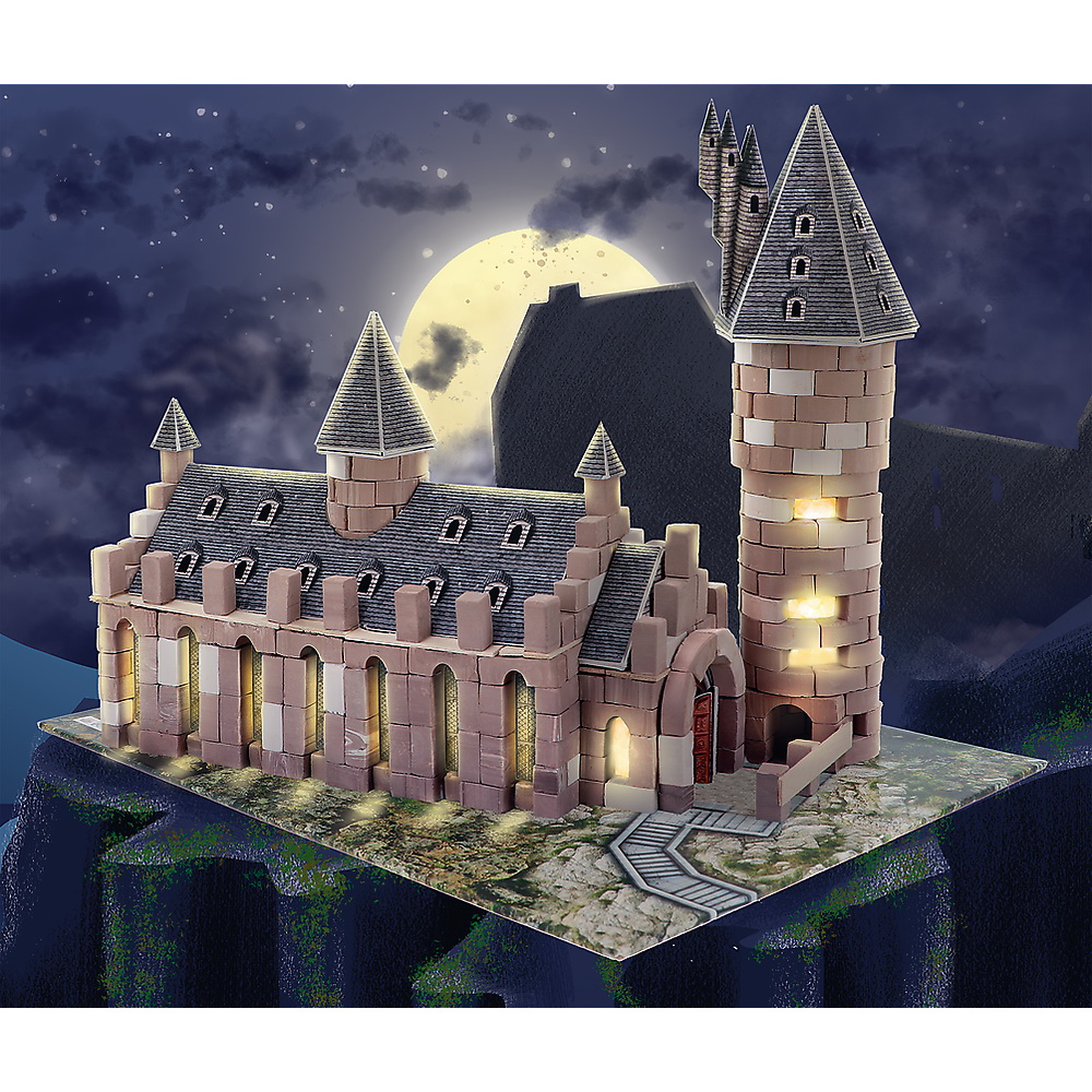 Conceput pentru fanii Harry Potter de orice varsta, va va permite sa deveniti un arhitect al principalelor camere cunoscute de la scoala de Vrajitorie Hogwarts. Include caramizi ceramice reale si elemente decorative din carton si lemn, precum si muschi si pietre. Datorita preocuparii noastre pentru mediu, acest set contine pana la 97% materiale naturale Adezivul special functioneaza foarte repede si este foarte eficient aveti nevoie de o singura picatura pentru a conecta elementele! În plus, se dizolva in apa, permitandu-va sa repetati toata distractia iar si iar. Ai visat vreodata sa calatoresti in Lumea Vrajitorilor? Datorita seriei Brick Trick Harry Potter, este in sfarsit posibil! Construieste cea mai faimoasa camera din Hogwarts - Sala Mare, unde au avut loc ceremoniile magnifice! Dupa cum fanii Harry Potter isi vor aminti cu siguranta, este cea mai mare camera din intreg castelul, un loc pentru a gazdui sarbatori de bun venit, examinari sau Ceremonia de sortare! Jucandu-va cu seria Brick Trick Harry Potter, veti cunoaste insasi bazele scolii de Vrajitorie. si cel mai important - dupa ce a fost terminata, celebra Mare Sala de la Hogwarts poate fi expusa pe un raft de jucarii si poate decora camera ta!