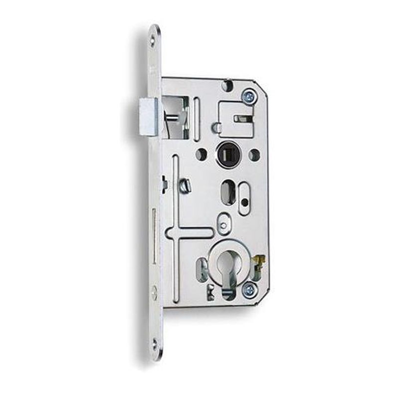 Utilizare: Recomandată pentru uși unde se dorește o închidere sigură cu cilindru și acționare ușoară. Se montează îngropat în cantul ușii, iar datorită găurilor pentru șilduri împărțite este potrivită pentru multe tipuri de mânere și rozete.