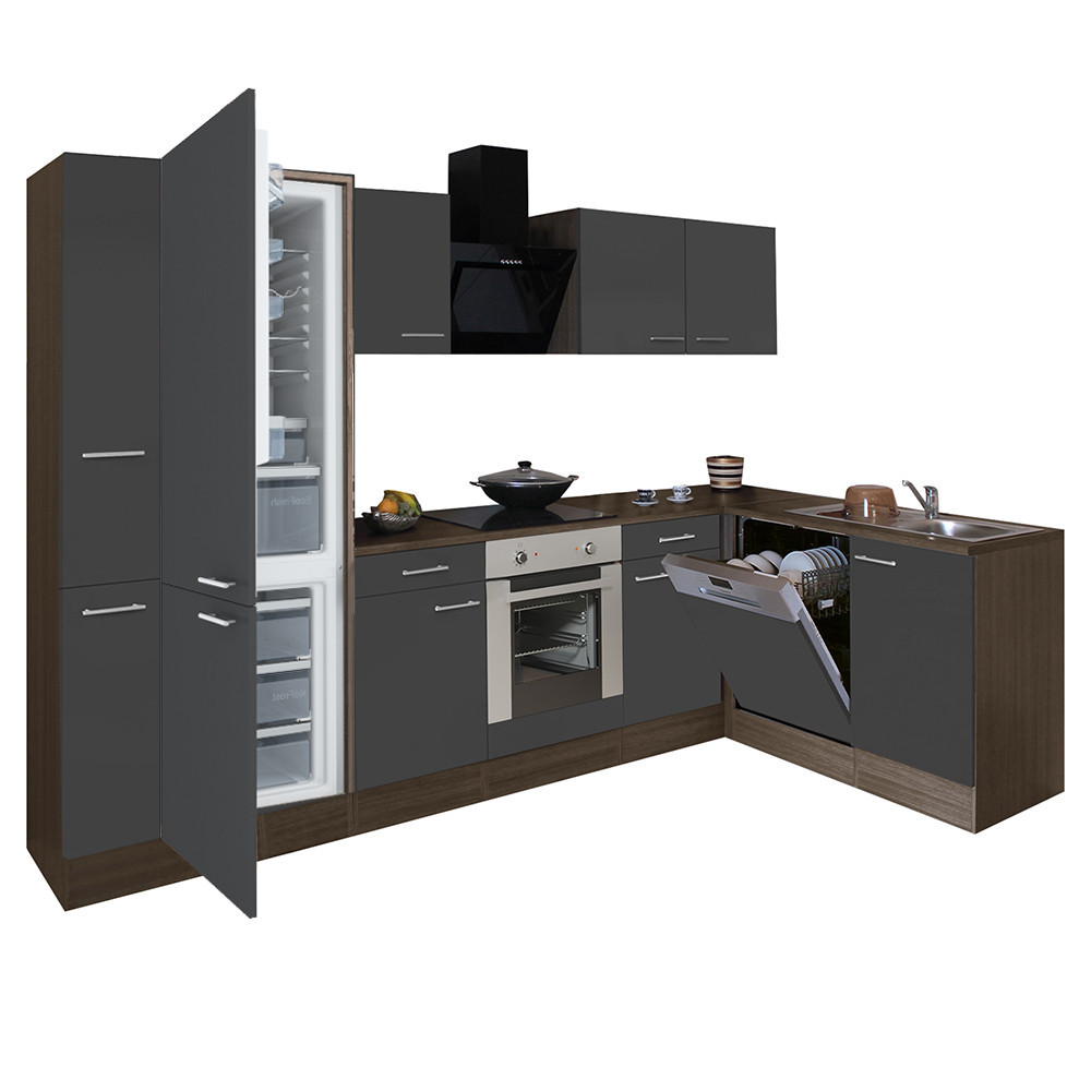 Bucătărie de colț Leziter Yorki 310 cm, stejar Yorki, antracit satinat