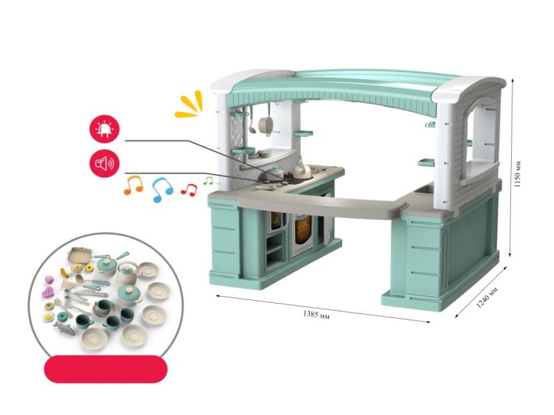 Bucătărie mare pentru copii cu sunete, lumini și 34 accesorii, Turquoise