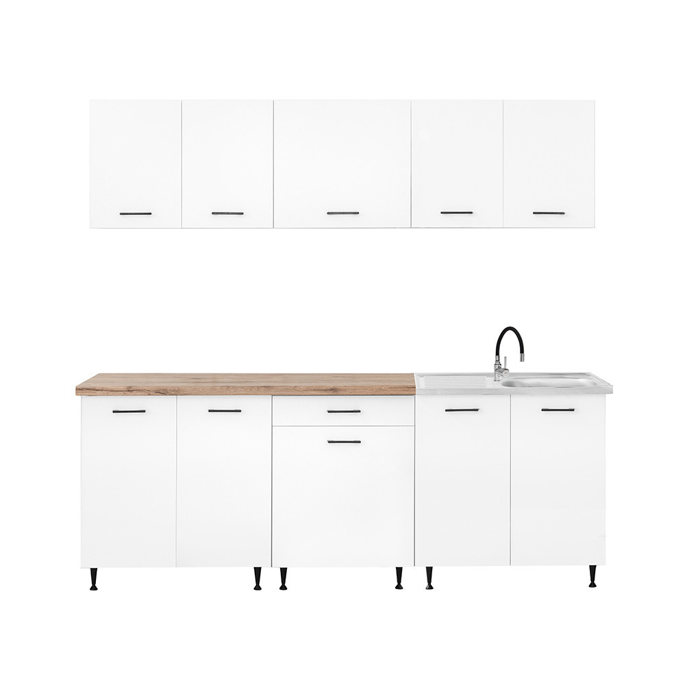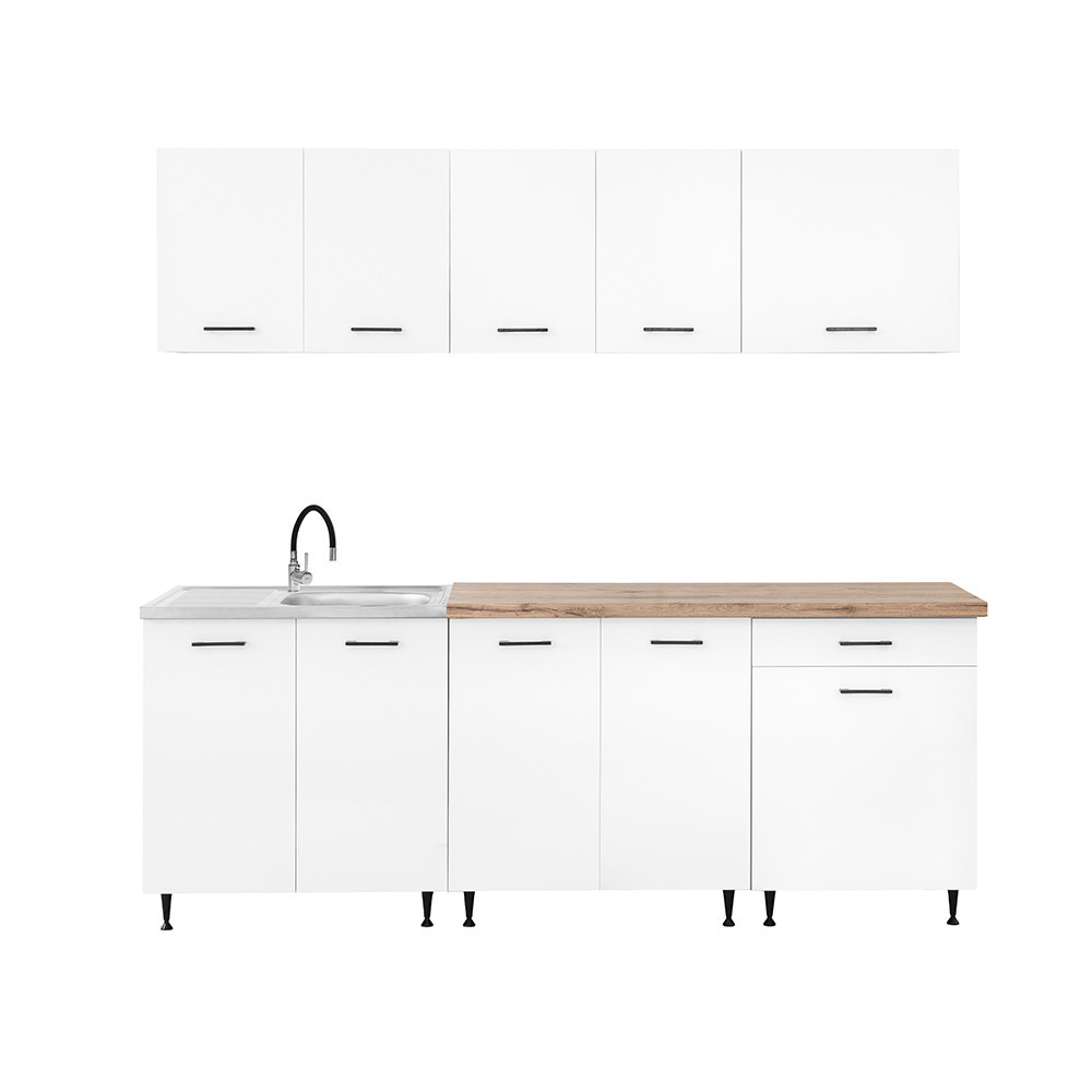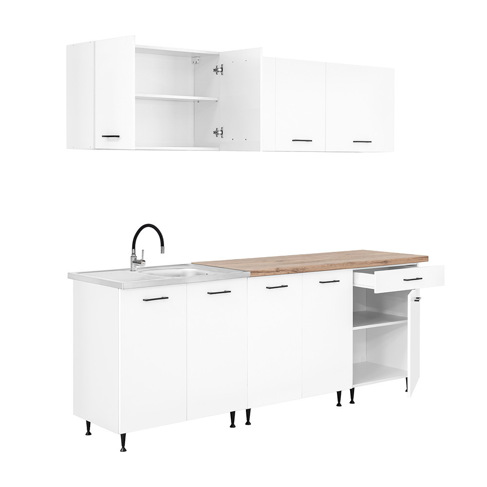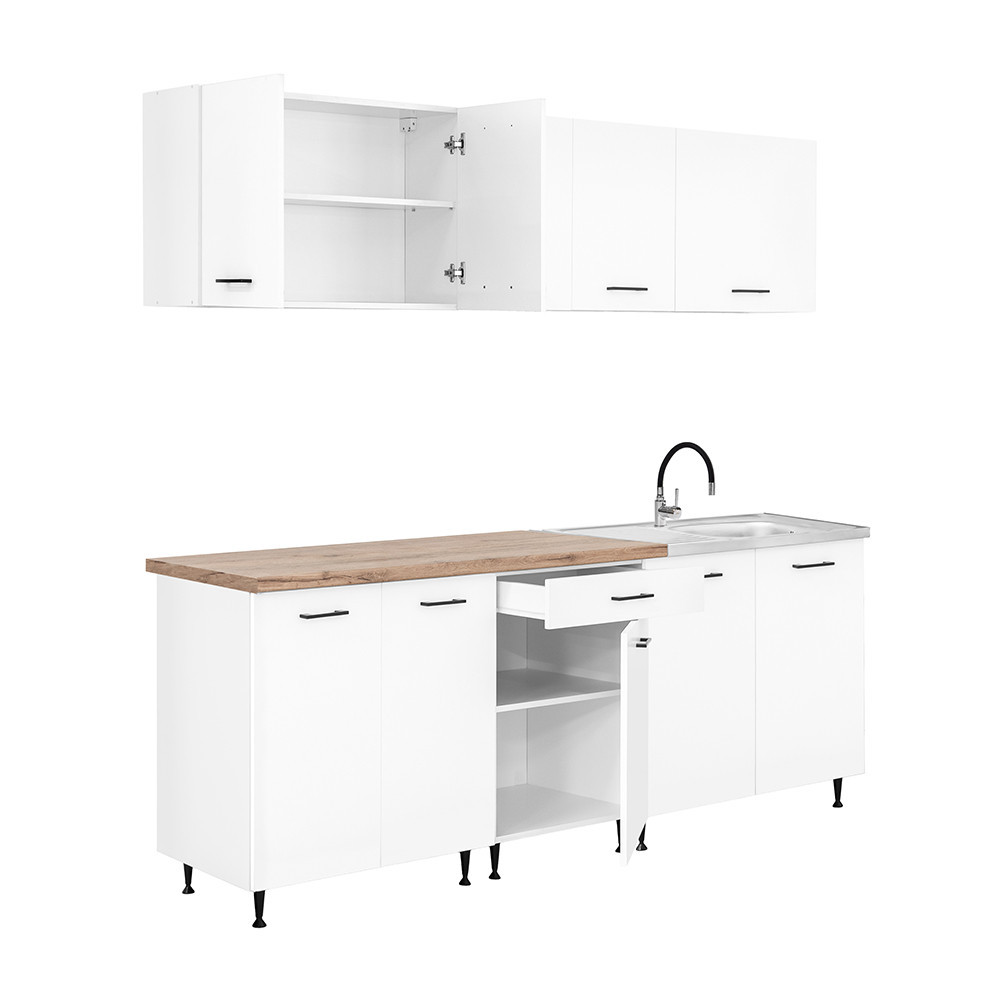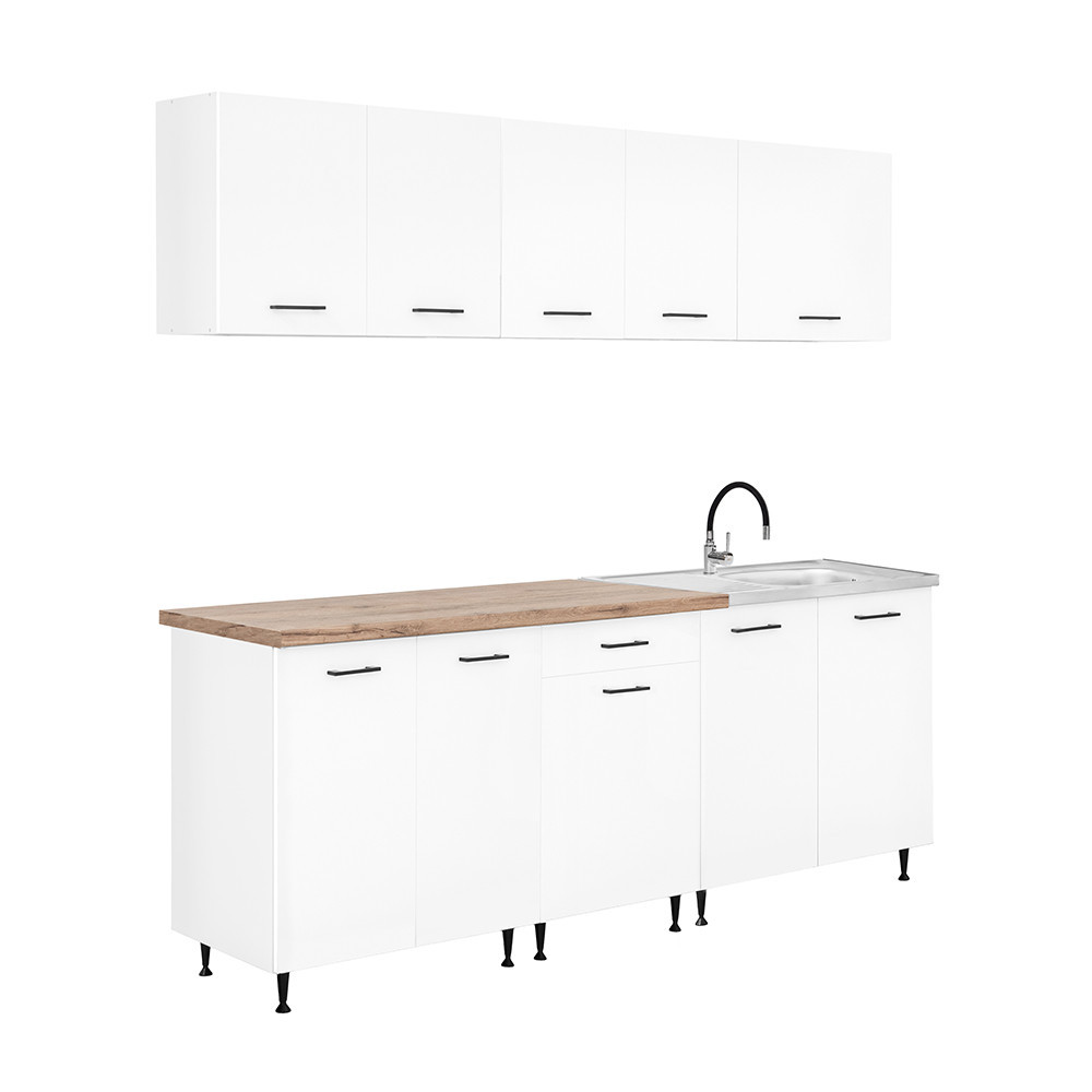 Bucătărie modulară Leziter Primo 220 cm, alb, cu blat stejar Charlestone