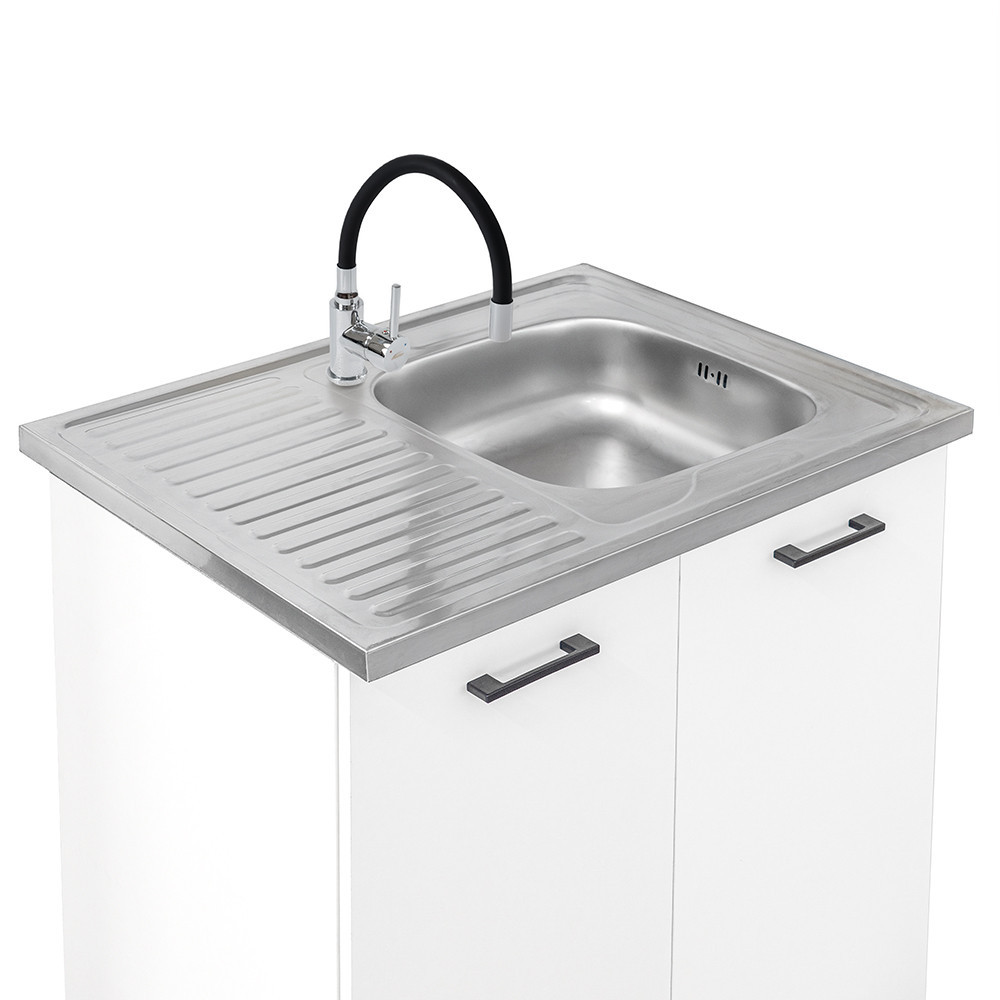 - Unități de bază (3 buc): 2 corpuri cu 2 uși (80 cm) + 1 corp cu 1 sertar și 1 ușă (60 cm)