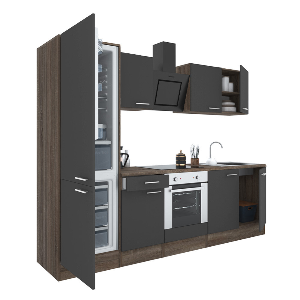 Bucătărie modulară Leziter Yorki 270 cm, stejar Yorki/antracit, corp cuptor + coloană frigider