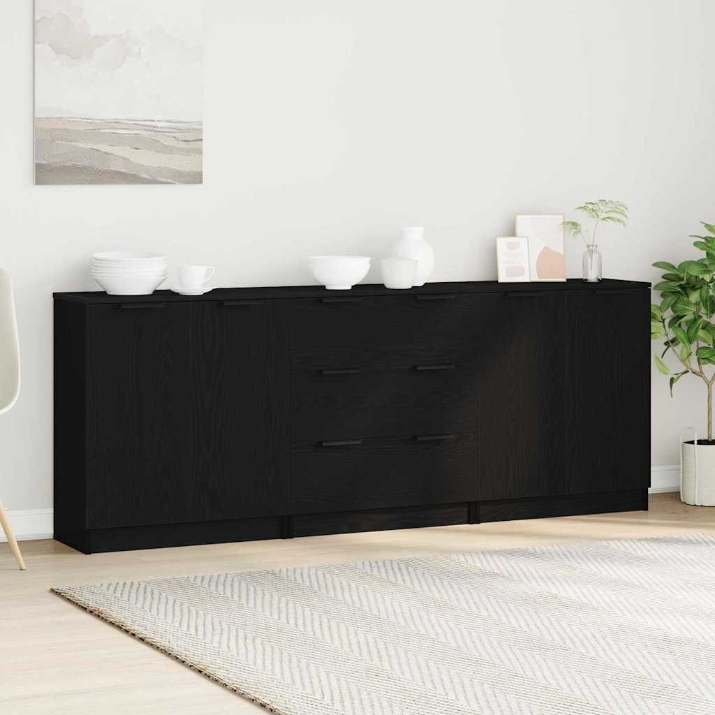 Bufet 3 pcs Stejar Negru 180 x 30 x 70 cm Lemn compozit GartenMobel Dekor