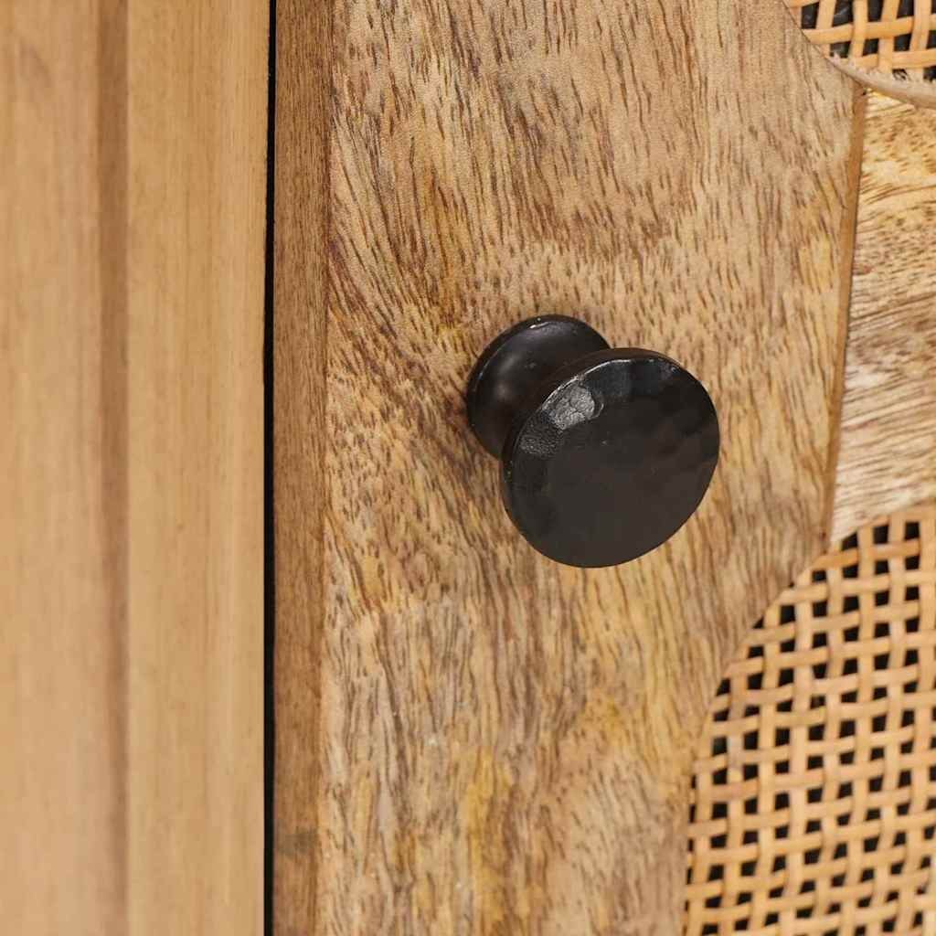 - Materiale: E făcut din lemn masiv de mango, super durabil și cu un look fain. Materialul ăsta oferă un fundament solid și adaugă o căldură naturală în orice încăpere. Lemnul prelucrat ajută la greutatea bufetului, fiind și ușor de mutat.