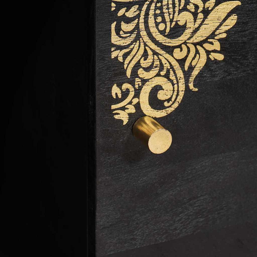 - Caracteristici / Funcție / Design: Decorat frumos cu imprimeuri aurii, bufetul ăsta e atât decorativ, cât și util. Ușile cu balamale și butoane din alamă oferă un spațiu generos de depozitare, făcându-l ideal pentru orice articol, indiferent de dimensiune sau formă.