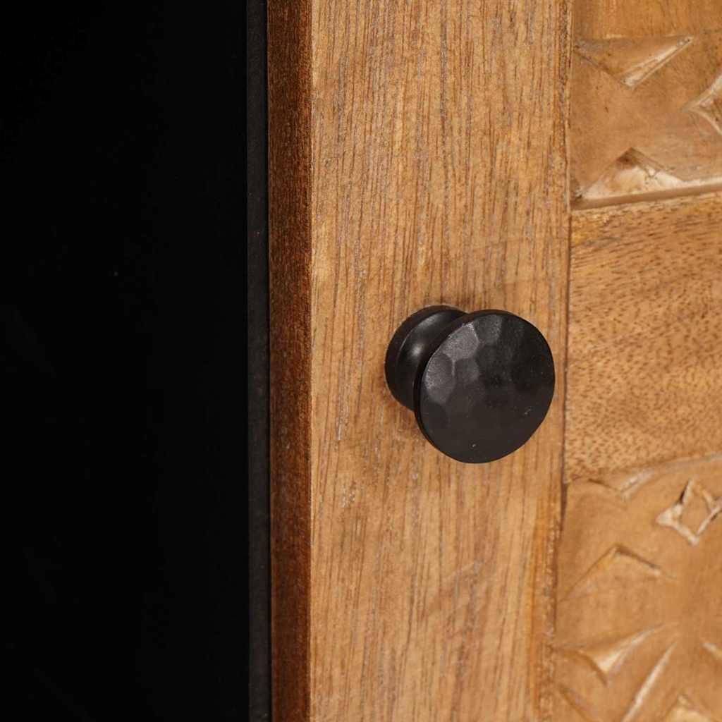 - Materiale: Fabricat din lemn masiv de mango și lemn prelucrat, oferind o structură robustă ce rezistă la utilizarea zilnică. Textura caldă a lemnului de mango aduce un caracter aparte, contrastând de minune cu finisajul elegant al lemnului prelucrat.