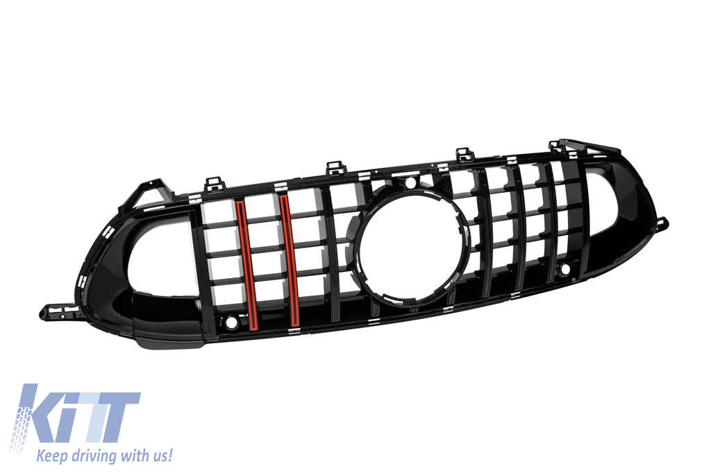 Bumper frontal tip A Design GT63 cu grilă tip Brabus cu lac negru și linii roșii, potrivit pentru Mercedes A Design GT 4 Door Coupe după 2019 Performance AutoTuning