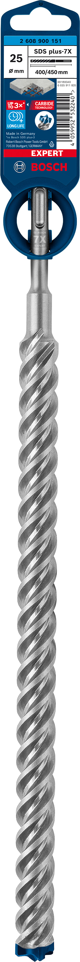 Burghiu Bosch Expert SDS Plus-7X pentru beton armat, 25x400x450 mm
