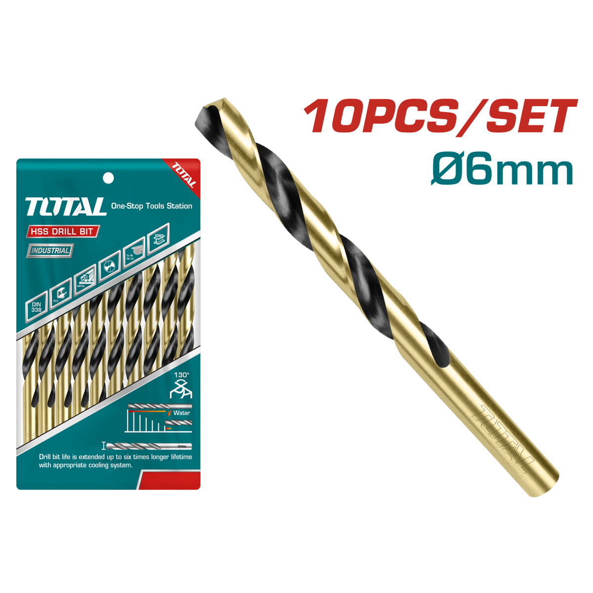 Burghiu pentru metal HSS 6 mm Total, 93 mm, pentru gaurire precisa