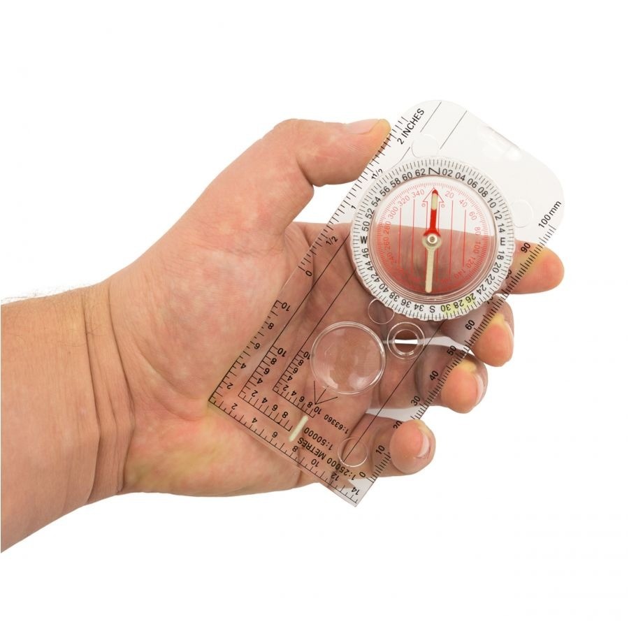 Cu un design tactic si gradatii clare, busola permite citiri rapide si precise, fiind dotata cu elemente esentiale pentru navigatie precum vizor pentru directie si capac metalic de protectie.