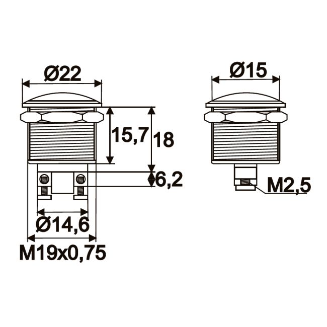 Descriere Buton 1 circuit 2A-250V OFF-(ON), metal