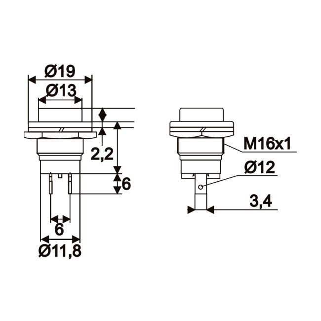Descriere Buton 1 circuit 2A-250V OFF-(ON), negru