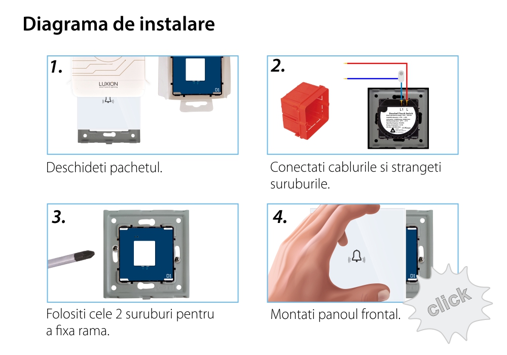 Specificatii Buton Sonerie Touch, Revenire, Sticla LUXION