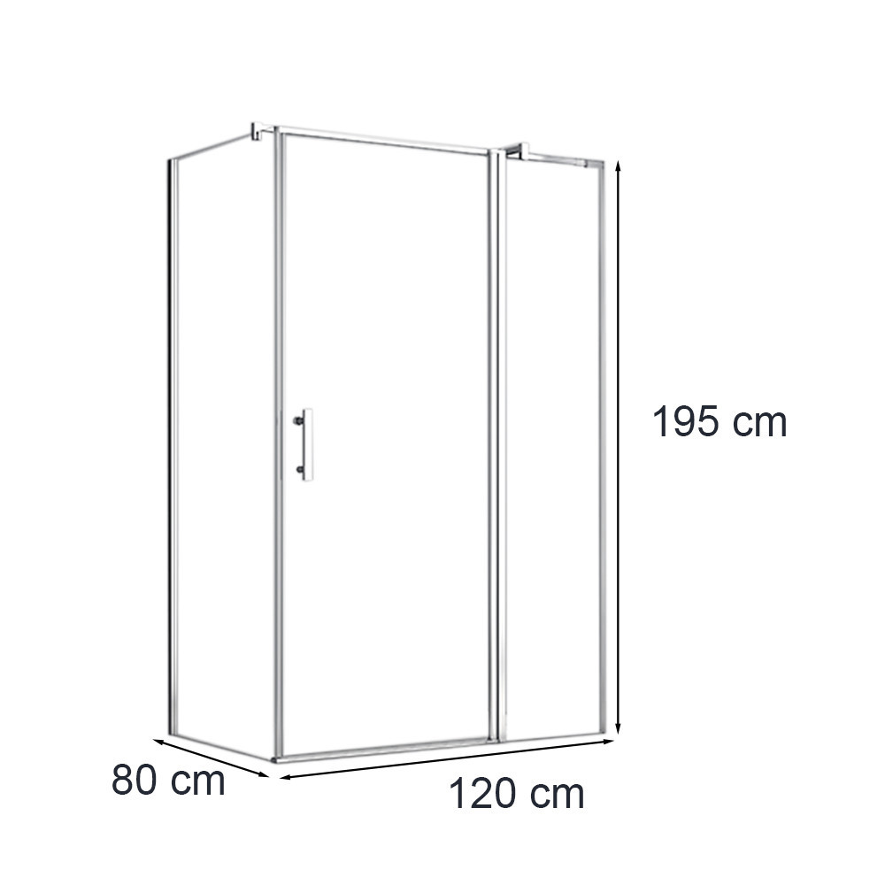 Cabină de duș asimetrică Leziter 80x120 cm, cu ușă batantă, fără tavă