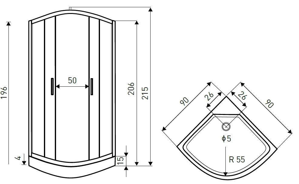 - Dimensiuni cabină: 90 x 90 x 215 cm