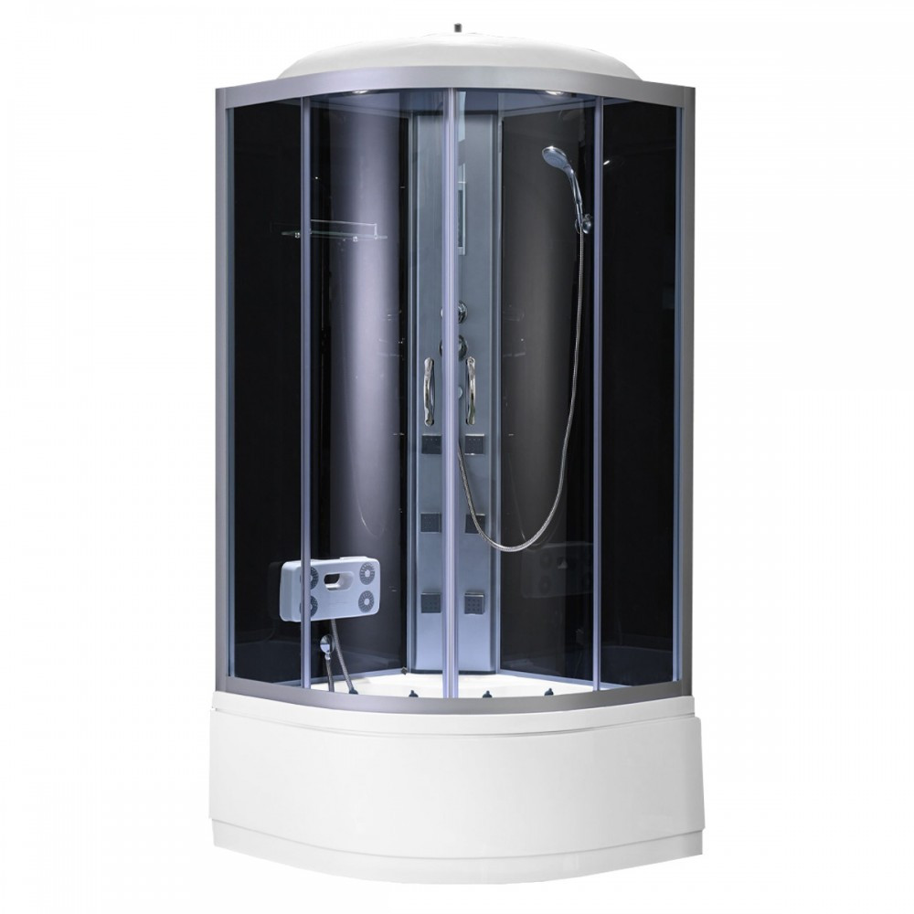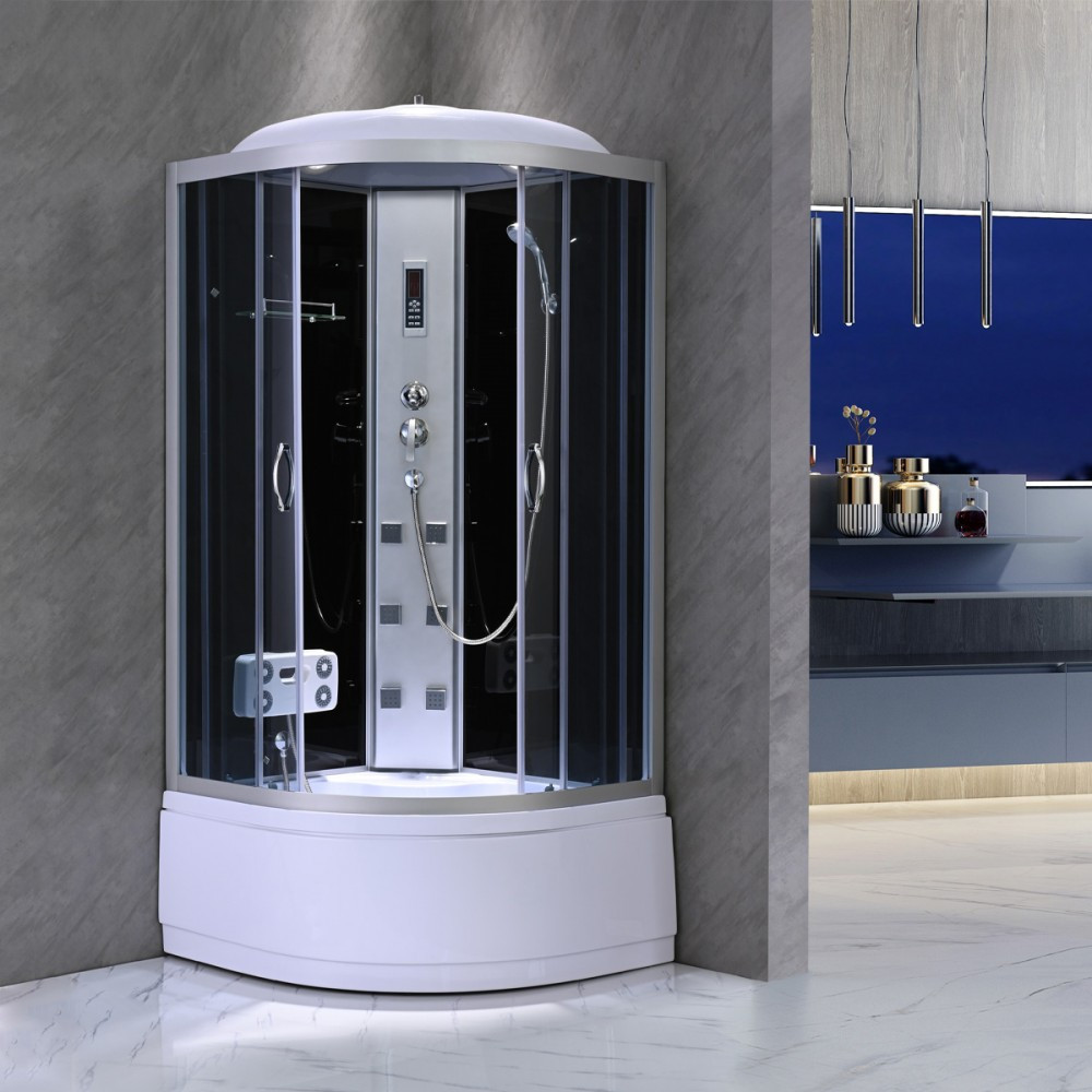 Cabină de duș cu hidromasaj Leziter Mila 90x90 cm, curbată, negru, tavă adâncă