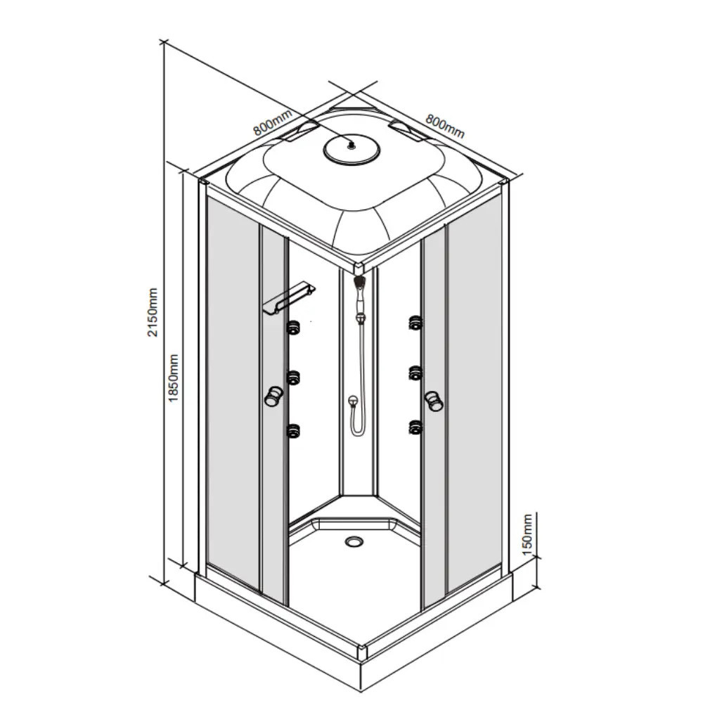 Utilizare: recomandată pentru băi de apartament sau spații compacte, unde vrei o cabină completă, ușor de întreținut, cu funcții de relaxare. Pentru rezultate optime, curăță periodic sticla și profilele cu soluții dedicate pentru cabine de duș.