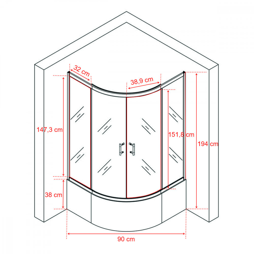 Utilizare: recomandată pentru montaj în colț (90x90 cm). Profilele de perete reglabile permit corectarea micilor abateri ale peretelui, astfel încât montajul să fie mai simplu și mai precis. Pentru o funcționare optimă, curăță periodic sticla și șinele/rolele cu soluții non-abrazive.