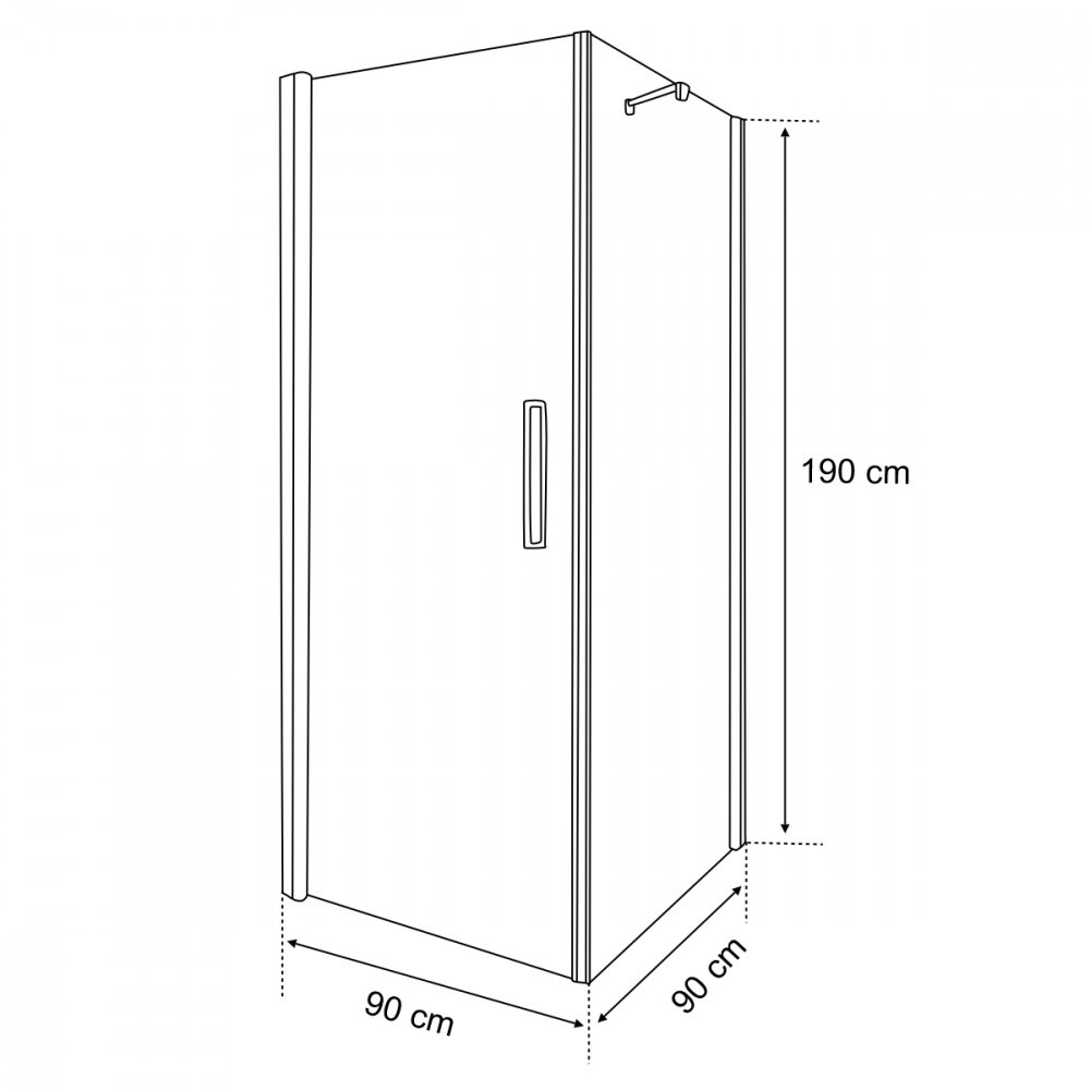 Cabină de duș pătrată Kerra Monica 90x90x190 cm, ușă batantă, sticlă 6 mm
