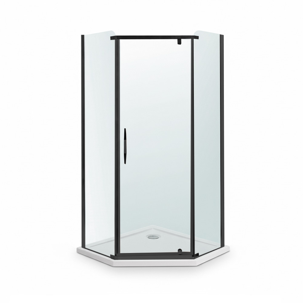 Cabină de duș pentagonală Leziter Celtic 100x100 cm cu tavă slim, profil negru