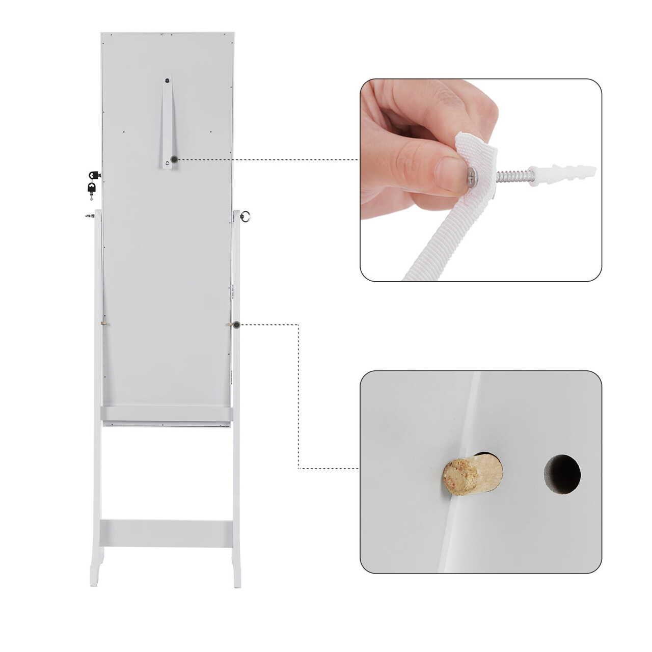 - Pune la dispozitie un spatiu larg si ofertant si organizeaza pe categorii toate bijuteriile. Caracteristicile suplimentare ale dulapului includ o sina pentru esarfe si 2 sertare pentru depozitarea altor accesorii.