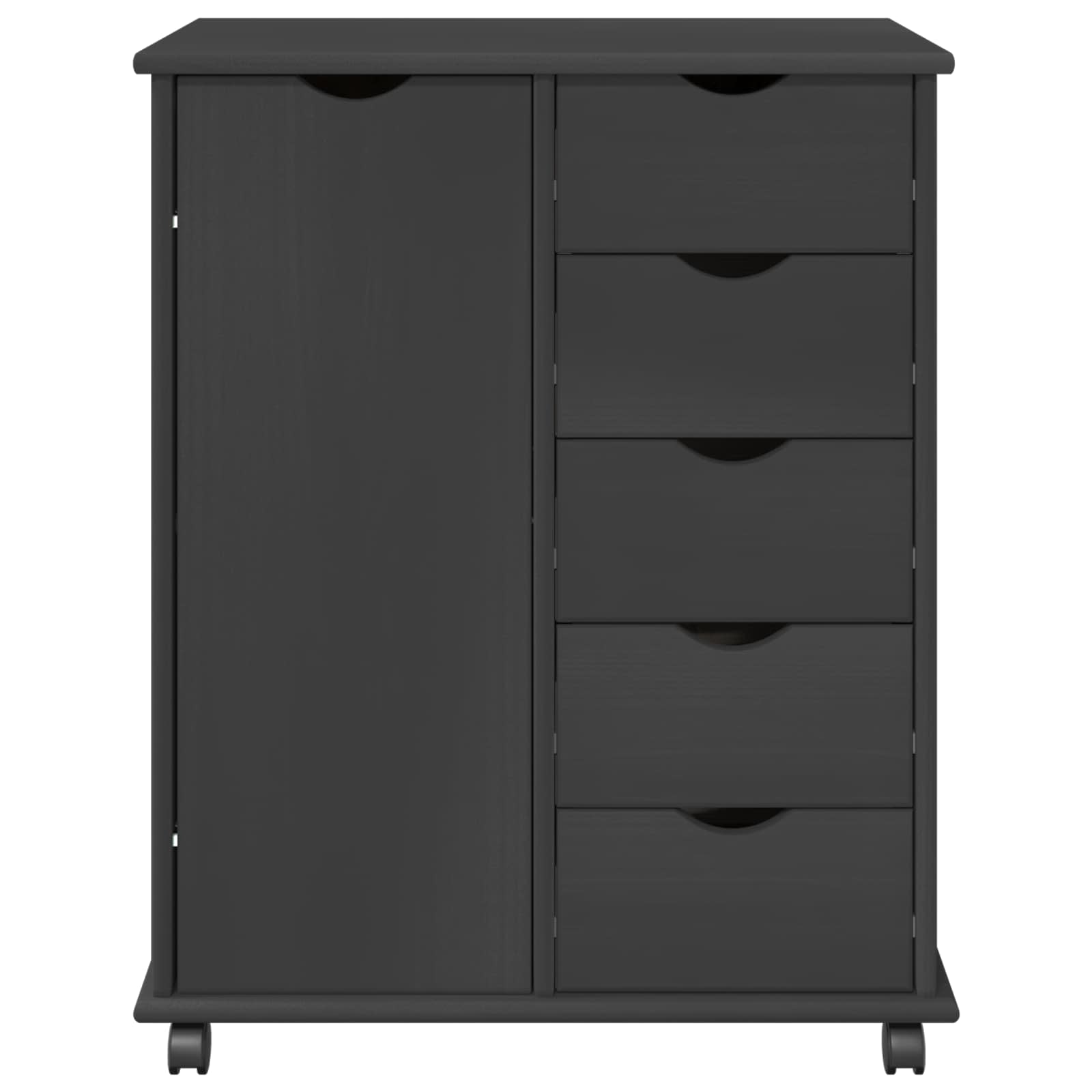 Cabinet mobil cu roata Gri 63,5 x 39 x 79 cm Lemn de pin masiv GartenMobel Dekor