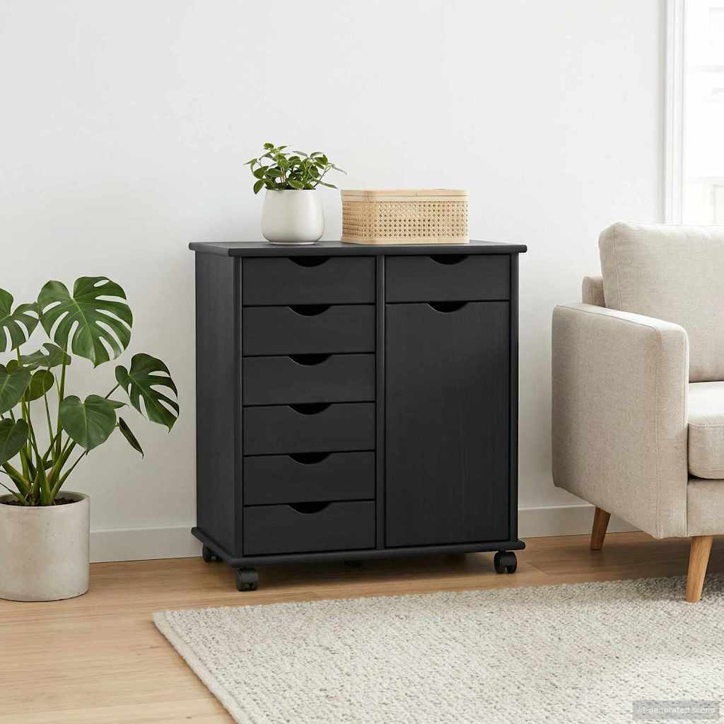 Cabinet mobil Negru 63,5 x 39 x 65,5 cm Lemn de pin masiv GartenMobel Dekor