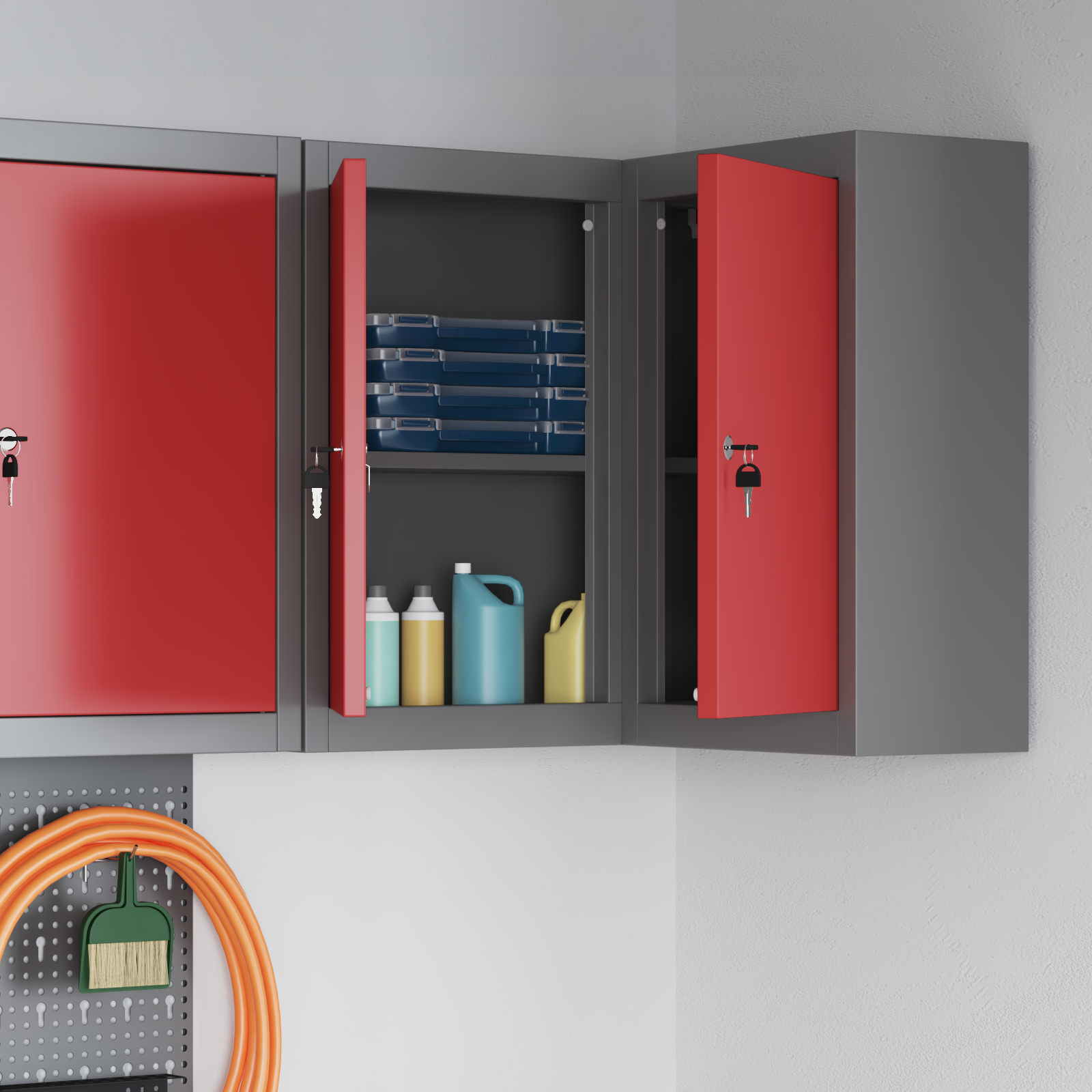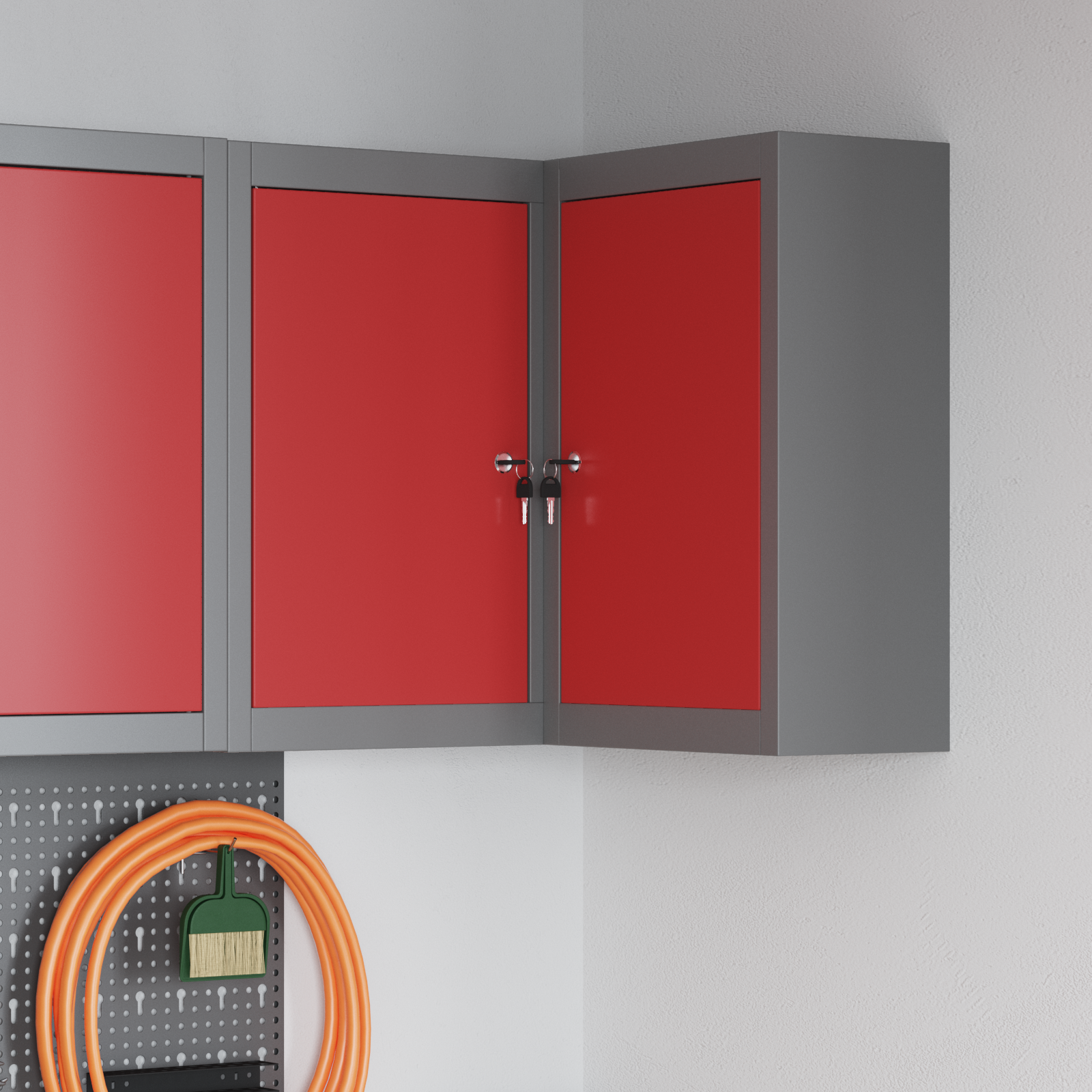 Cabinet pentru unelte colțar, montat pe perete și cu încuietoare, din oțel roșu GartenMobel Dekor