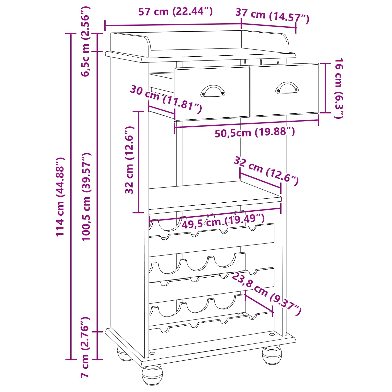 - Spațiu generos de depozitare cu compartimente, sertare și un raft superior spațios, special conceput pentru a-ți organiza vinurile și accesoriile. Compartimentele sunt elegante și ușor de folosit, asigurându-se că sticlele sunt în siguranță.