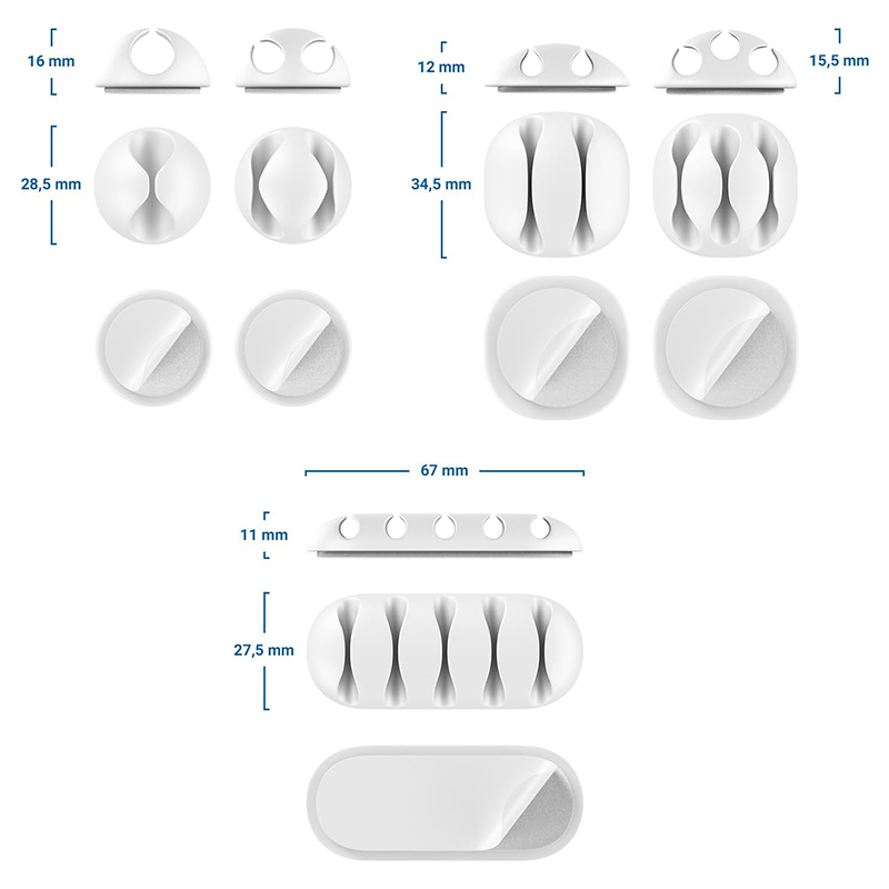 Acest produs facilitează organizarea, organizarea și fixarea cablurilor. Instalarea este rapidă și fără instrumente datorită suportului autoadeziv care aderă fiabil
