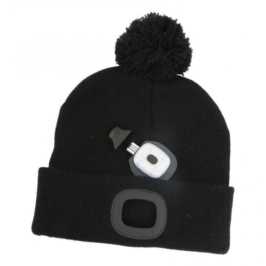 Caciula cu lampa de cap, 4 x SMD LED, model Craciun, negru, USB, 60 lm, marimea L