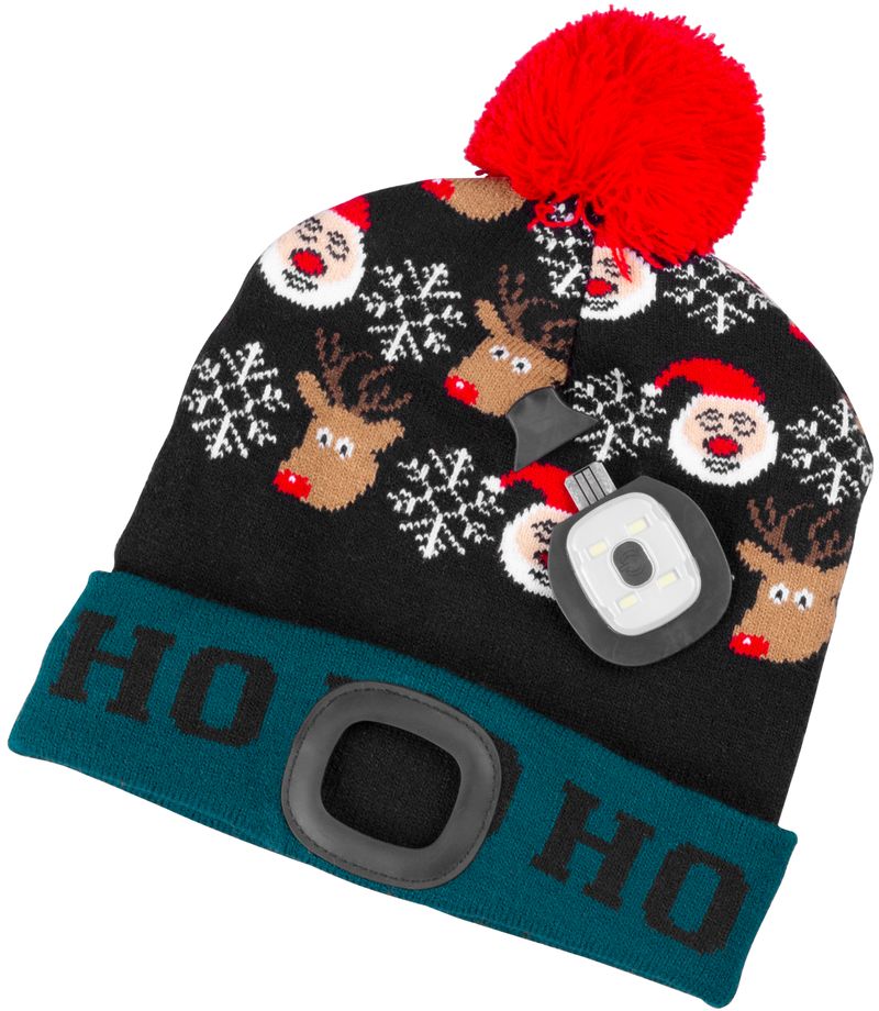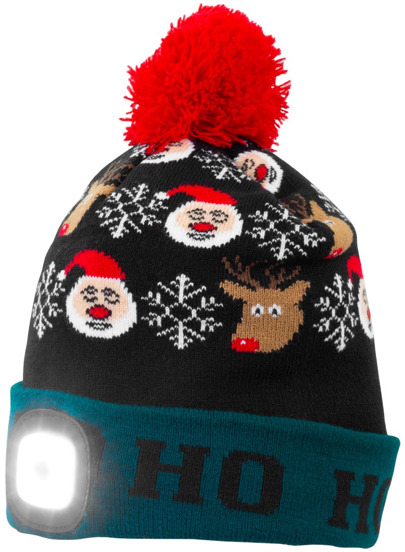 Căciulă de Crăciun cu LED Strend Pro Ho-Ho, verde-negru, USB