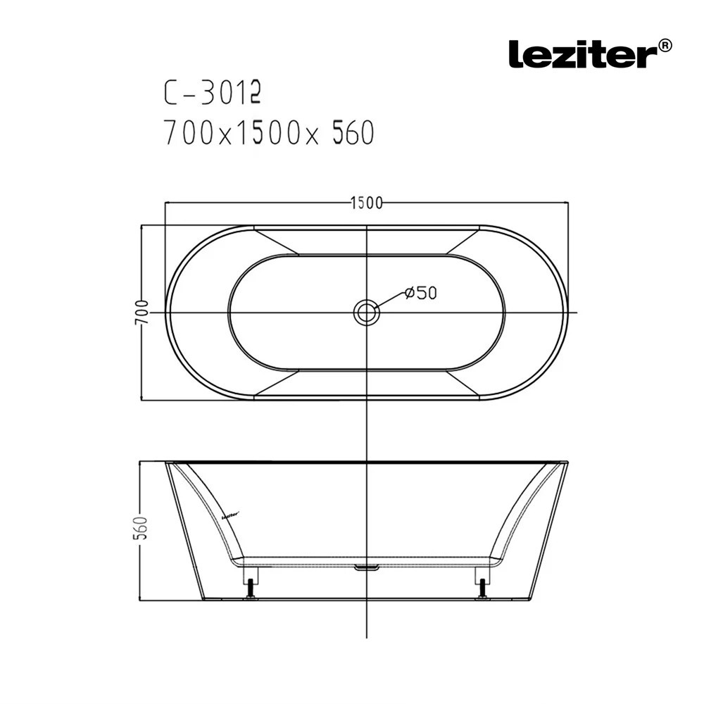 Specificatii Cadă freestanding Leziter Noa 150x70x56 cm,