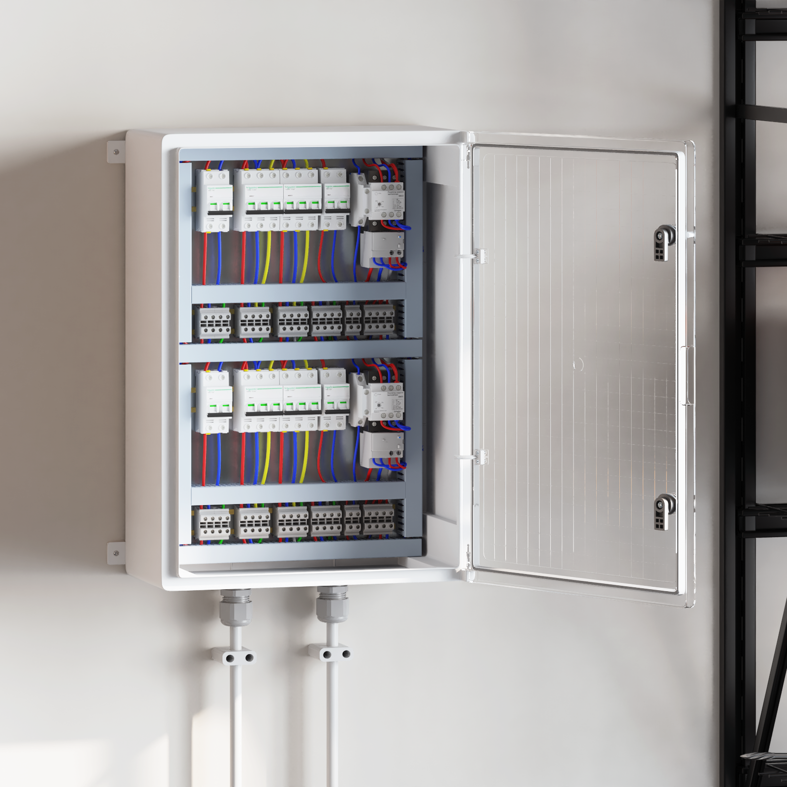 Cabinetul asta de control e rezistent și util, perfect pentru ateliere și garaje. E făcut să reziste la umezeală, având un finisaj alb mat elegant și o ușă opacă, combinând funcționalitatea cu stilul pentru nevoile tale de depozitare.