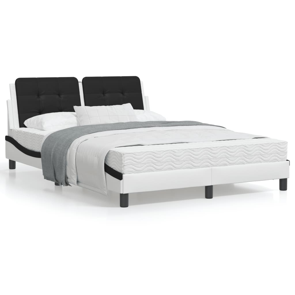 Cadru de pat cu LED, alb și negru, 140x200 cm, piele ecologică GartenMobel Dekor